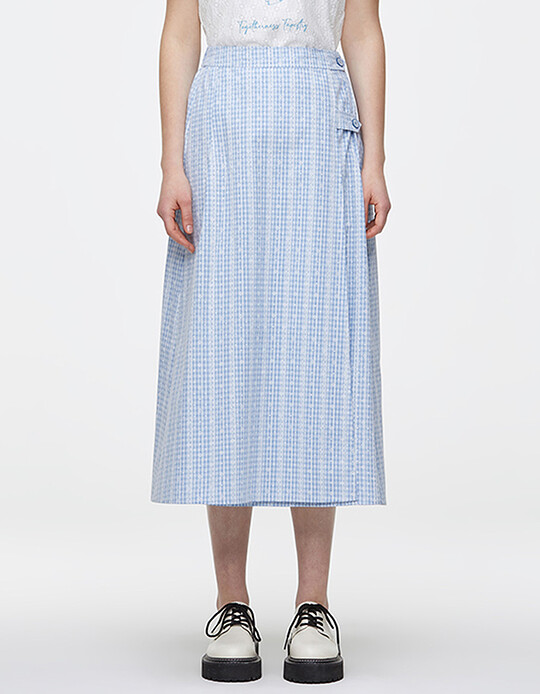 Thursday Island깅엄체크 밴딩 레이어드 스커트