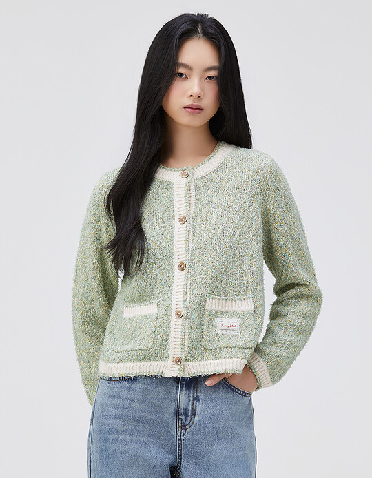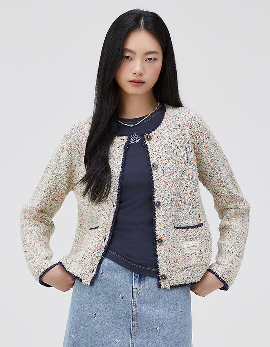 Thursday Island라운드넥 부클 니트 가디건