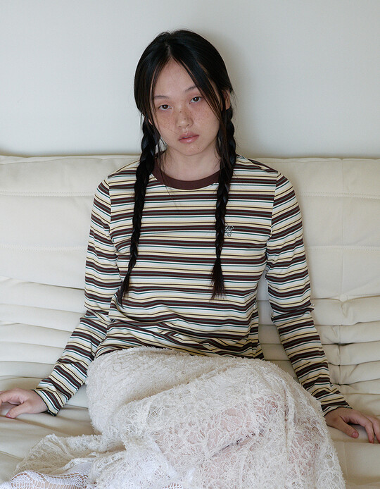 Thursday Island[KiiiKiii 착용] 멀티 스트라이프 자수 티셔츠