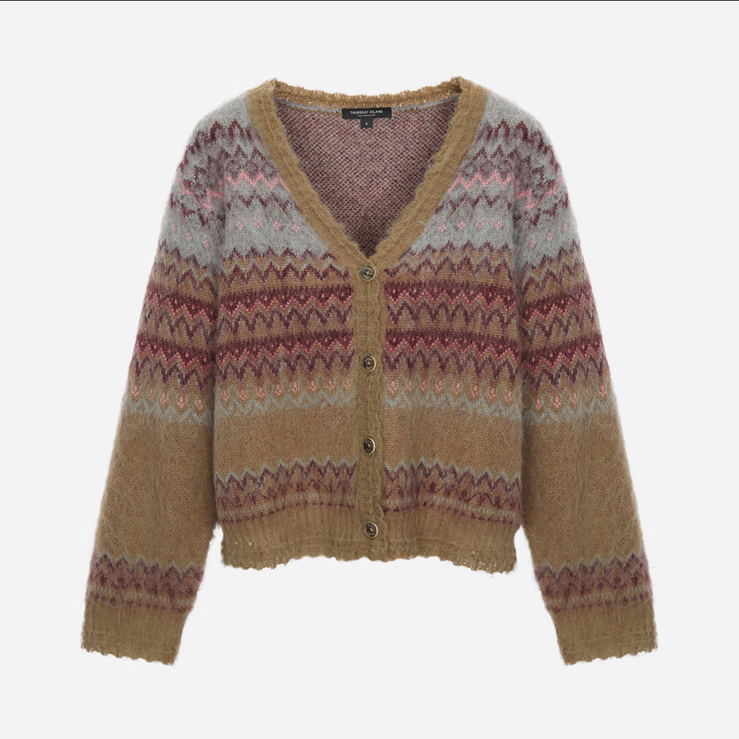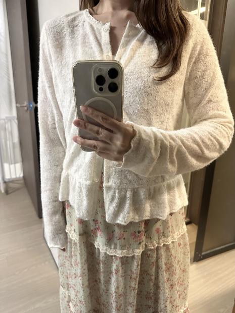라운드넥 부클 니트 가디건
