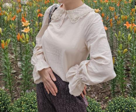 미니 부클 볼륨 소매 점퍼