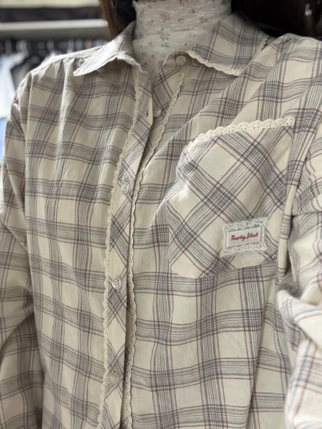 [KiiiKiii 착용] 빈티지 체크 프린트 티셔츠