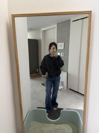 [KiiiKiii 착용] 레이스 배색 세미 와이드 데님 팬츠
