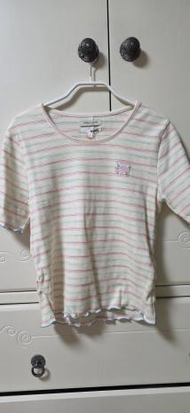 스트라이프 인타록 배색 티셔츠