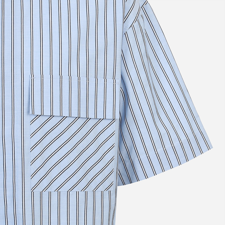 - 익스텐드 핏의 아웃터형 반팔 셔츠로 연출