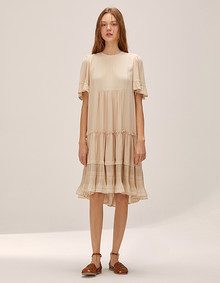 셔링 소매가 드라마틱한 실루엣을 연출해주는 아이템.