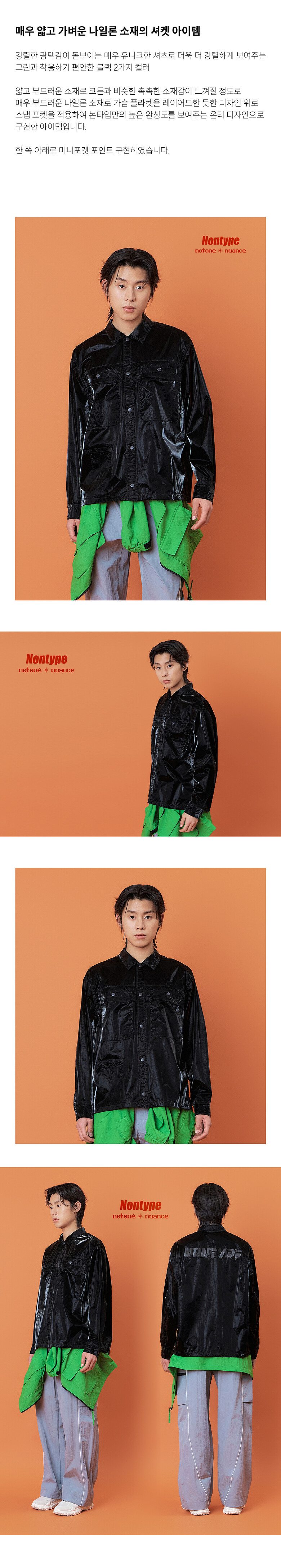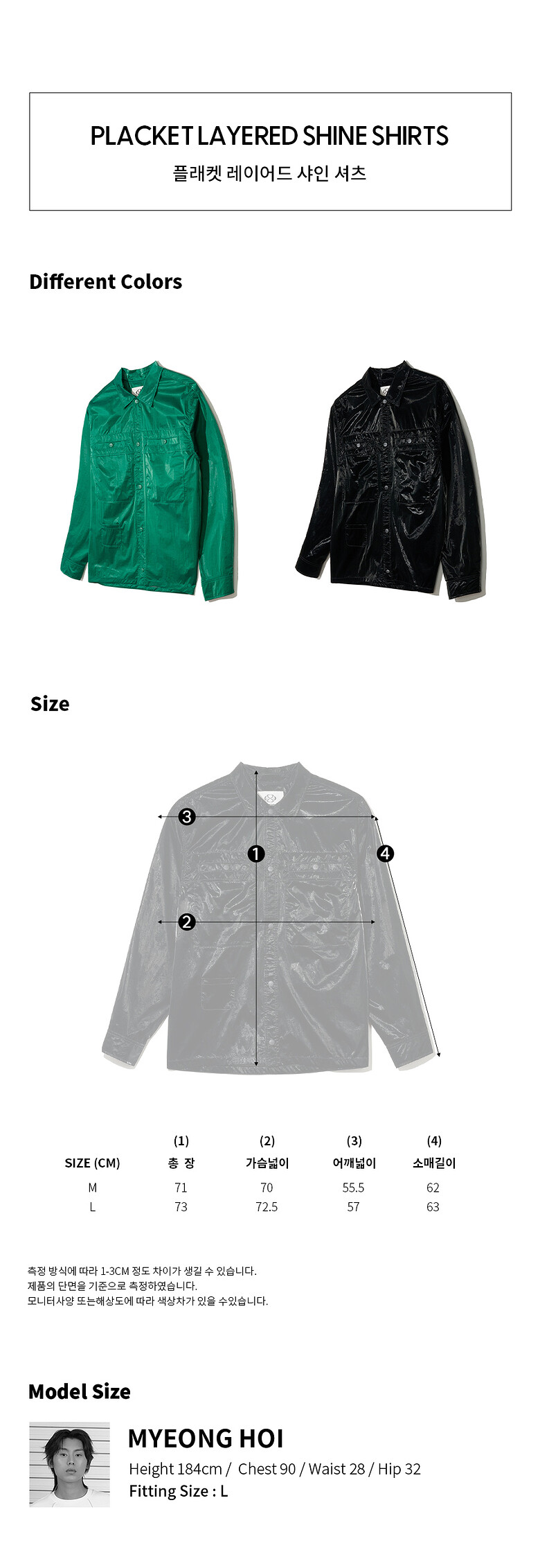 - 착용하기 편안한 블랙과 강렬한 광택감이 돋보이는 매우 유니크한 셔츠로 더욱 더 강렬하게 보여주는 그린 2컬러로 제안