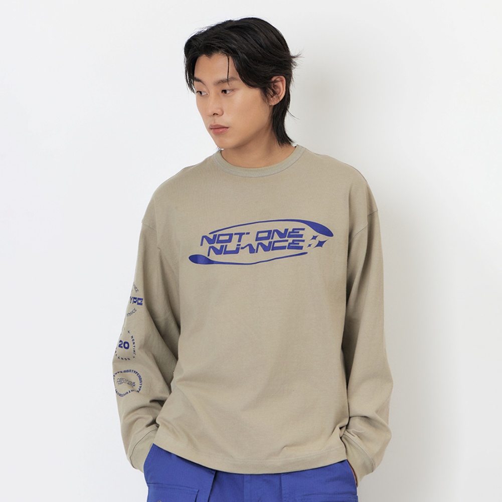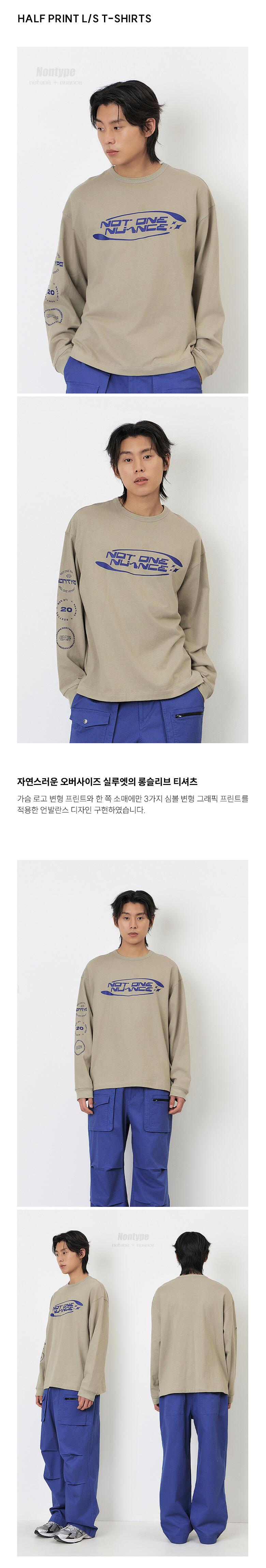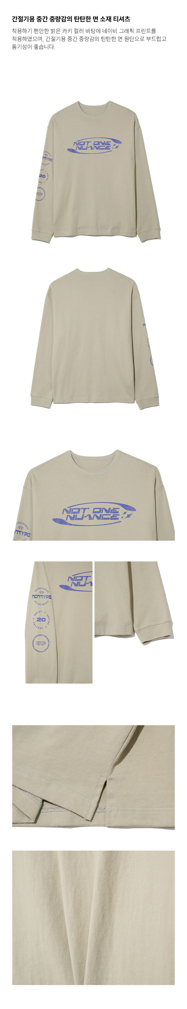 - 착용하기 편안한 밝은 카키 컬러 바탕에 네이비 그래픽 프린트 적용