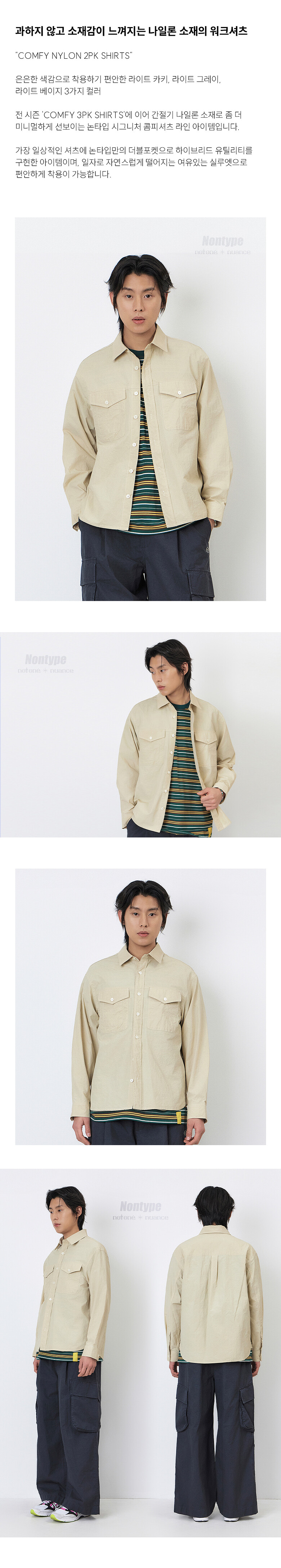 - 은은한 색감으로 착용하기 편안한 라이트 베이지, 라이트 카키, 라이트 그레이 3컬러로 제안