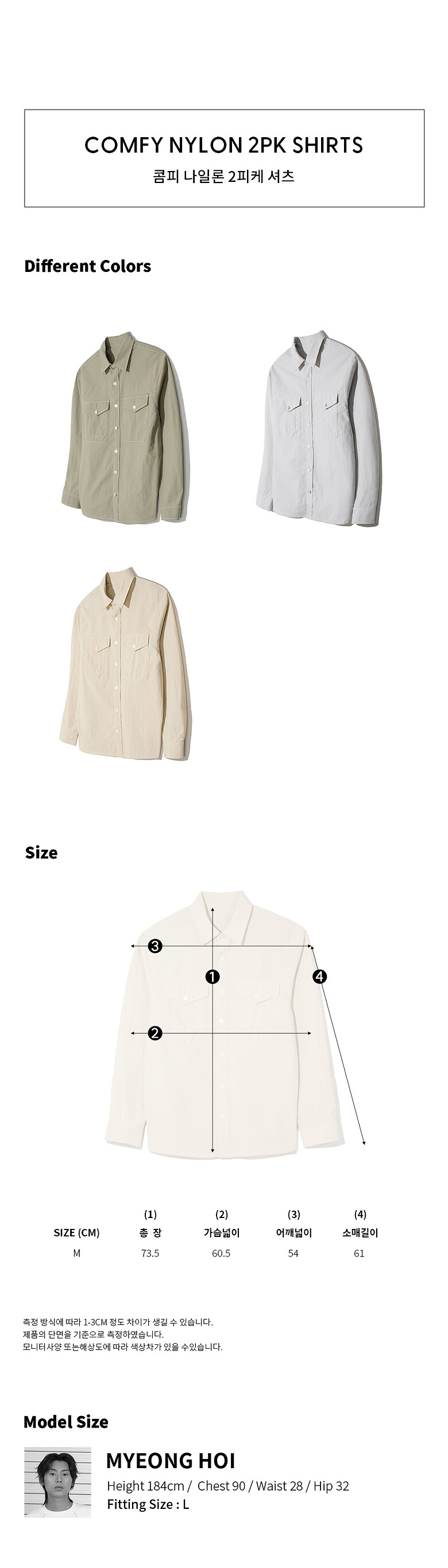 - 사이즈는 제품의 소재특성, 측정 방법에 따라 2~3cm 오차가 있을 수 있습니다.