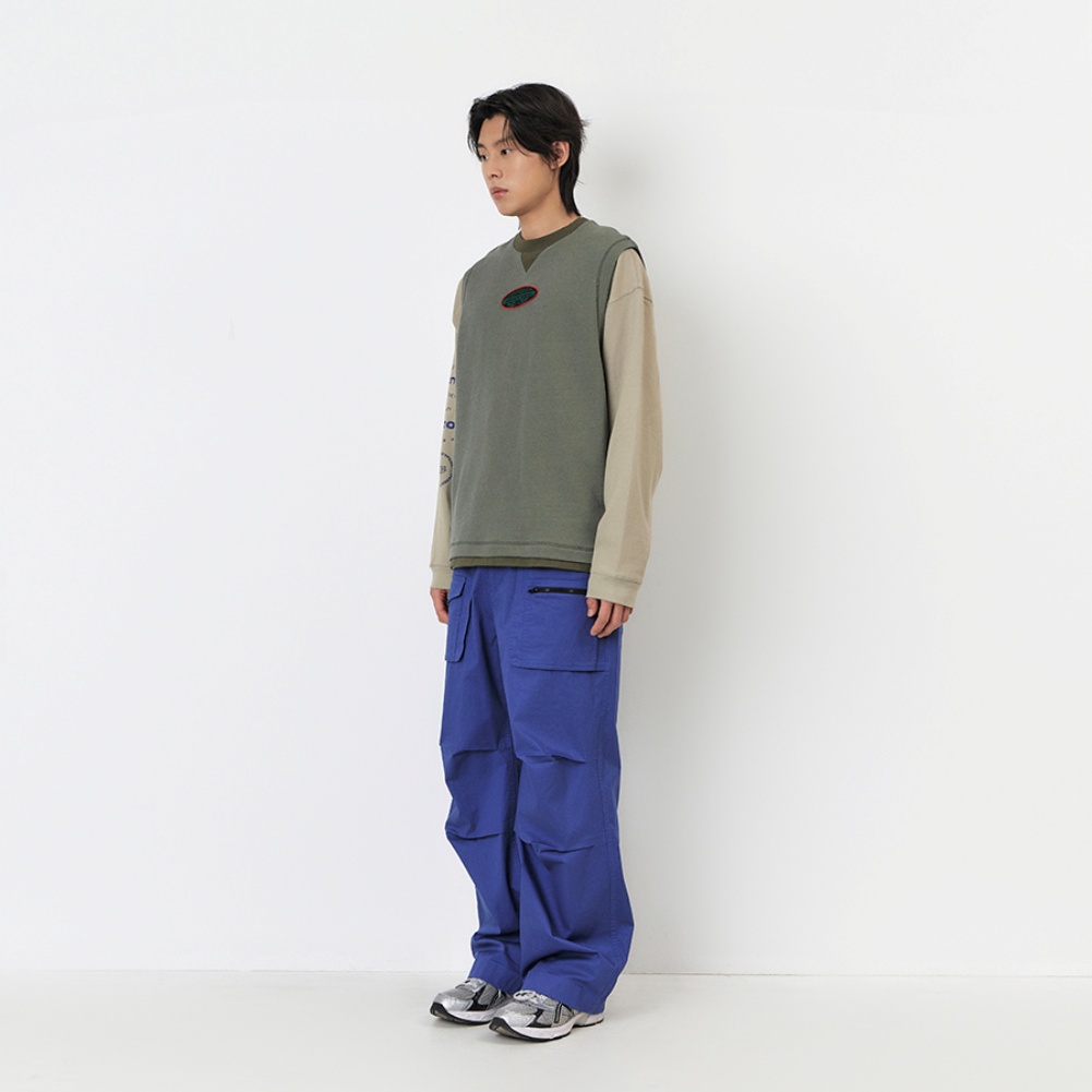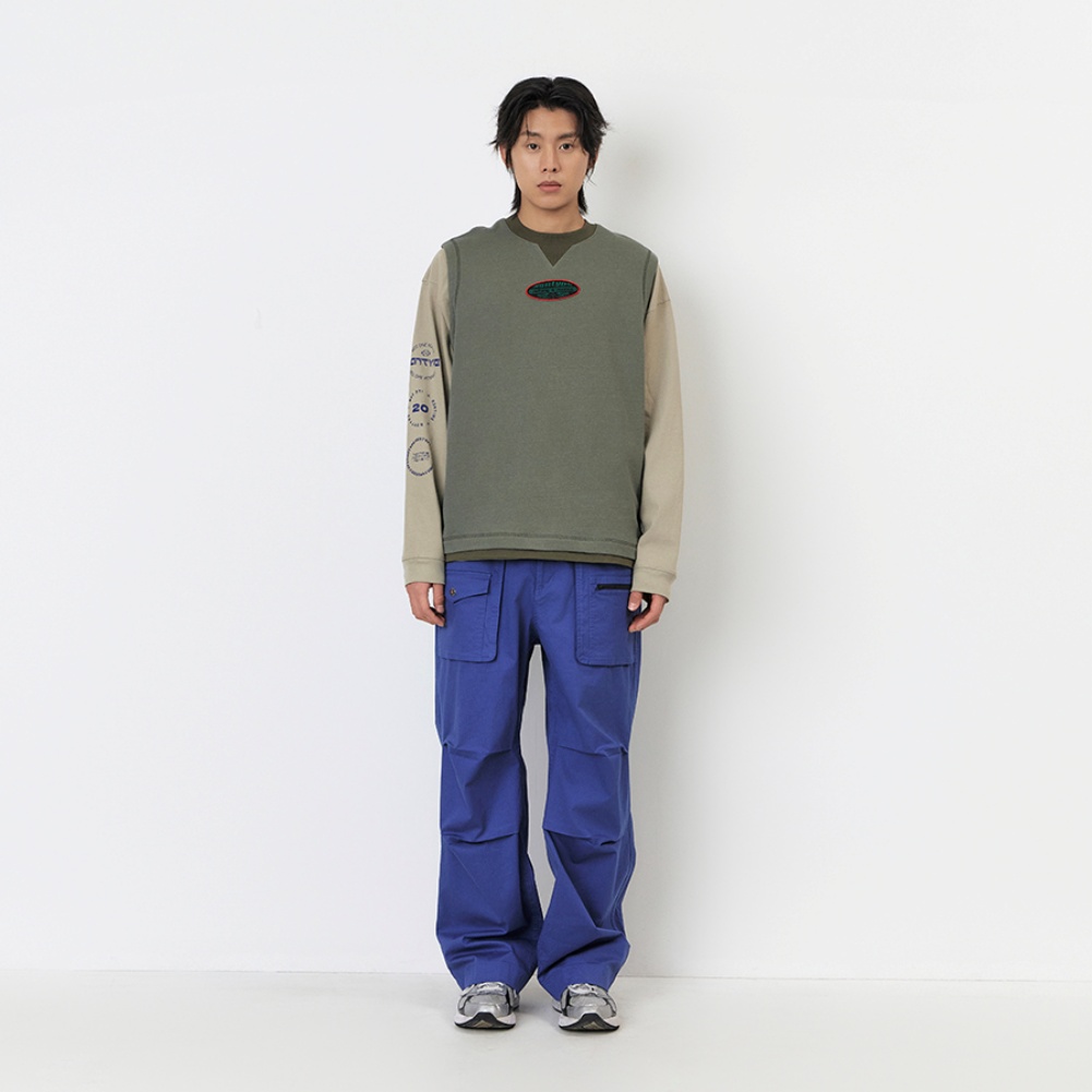 - 빈티지한 워싱감의 카키 원단으로 자연스러운 소재감을 살렸으며, 립과 밑단 이중 레어이드 디테일에 다크카키 컬러 톤온톤 배색을 적용하여 쉽게 착용 가능하도록 제안