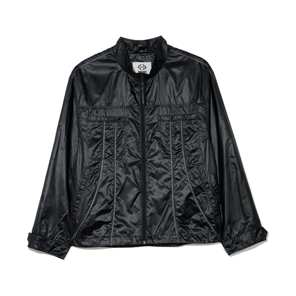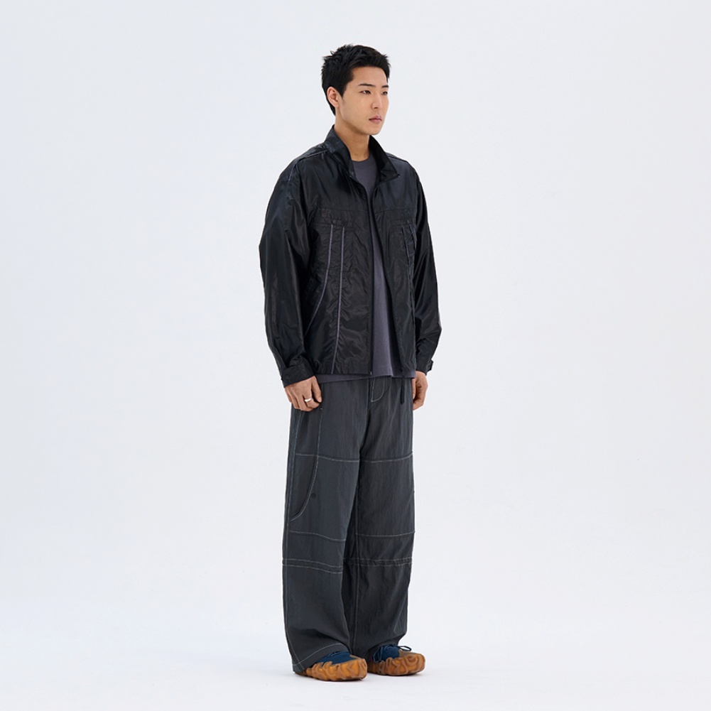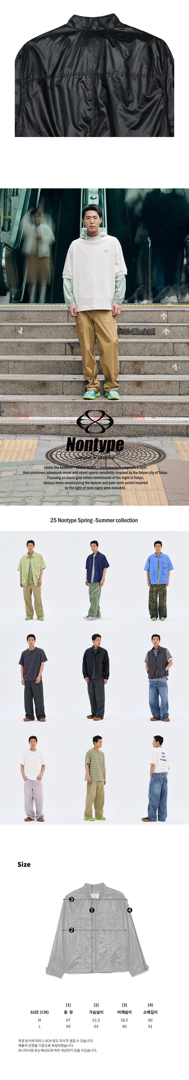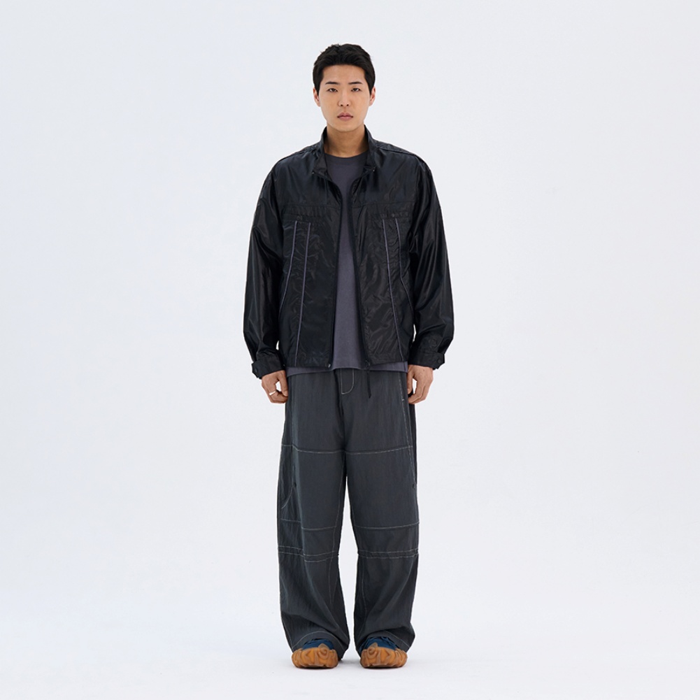 - 가슴 포켓에서부터 밑단 끝까지 두 줄의 자연스러운 곡선으로 내려오는 파이핑 디테일로 논타입만의 스포티한 포인트 연출
