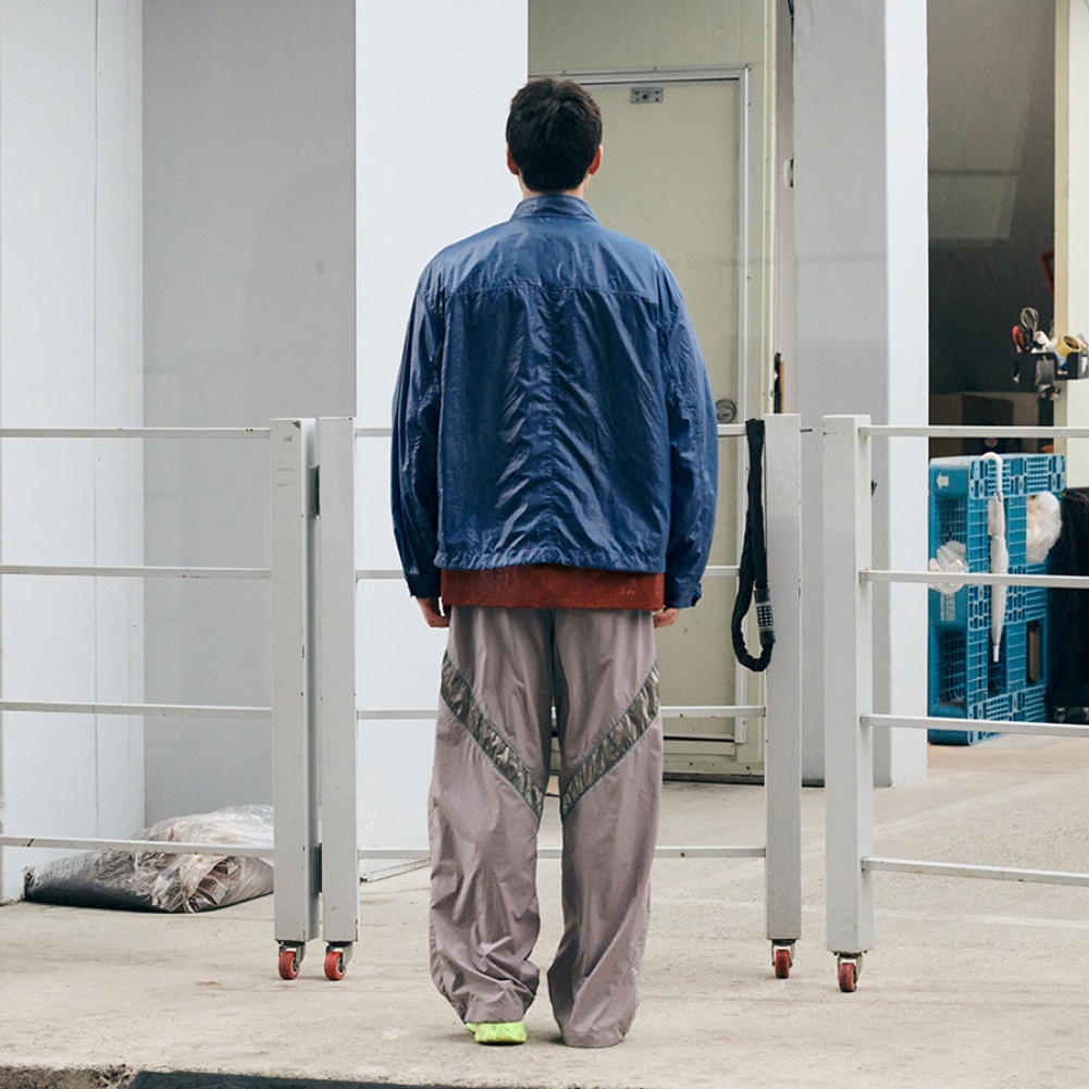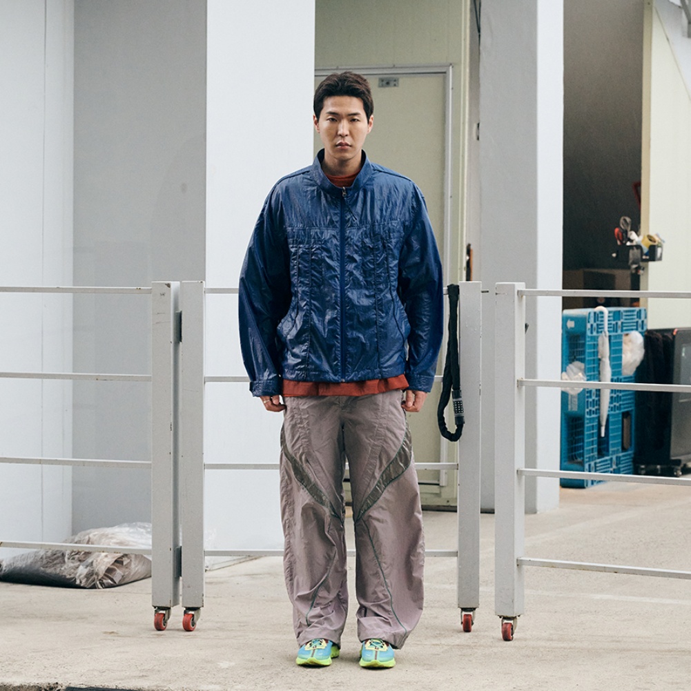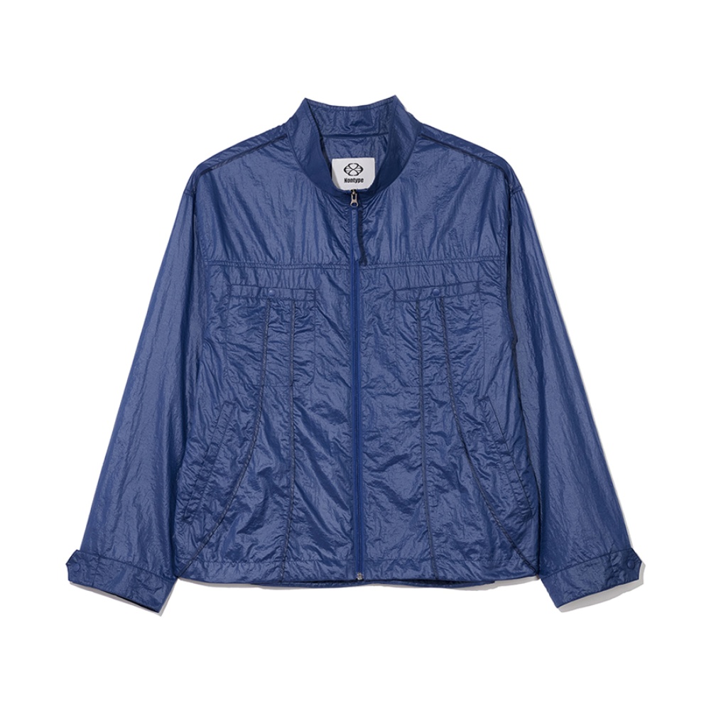 - 가슴 포켓에서부터 밑단 끝까지 두 줄의 자연스러운 곡선으로 내려오는 파이핑 디테일로 논타입만의 스포티한 포인트 연출