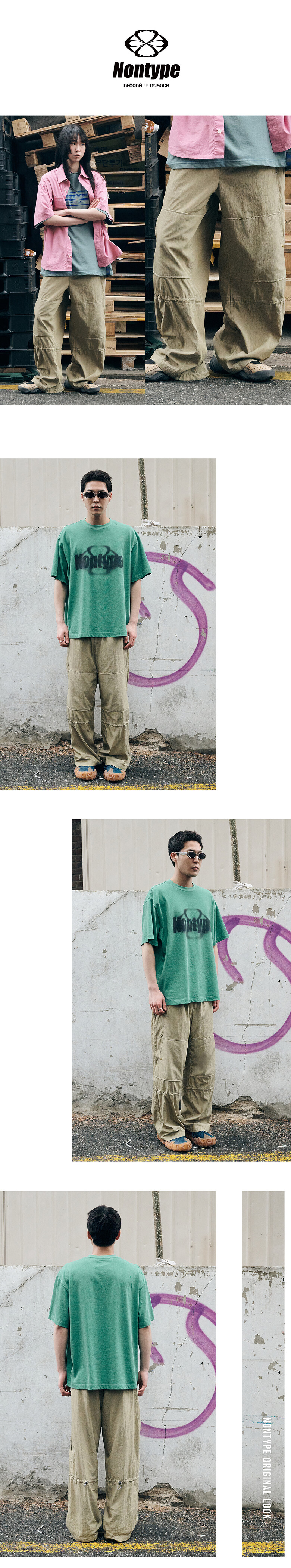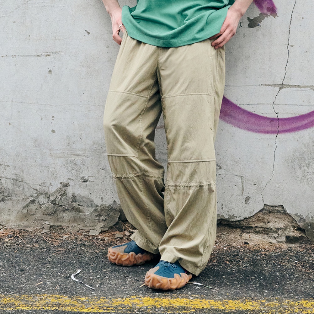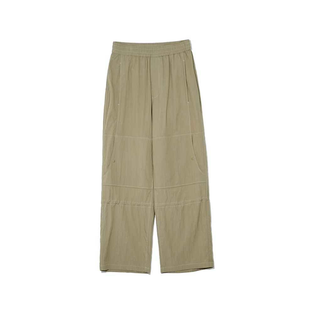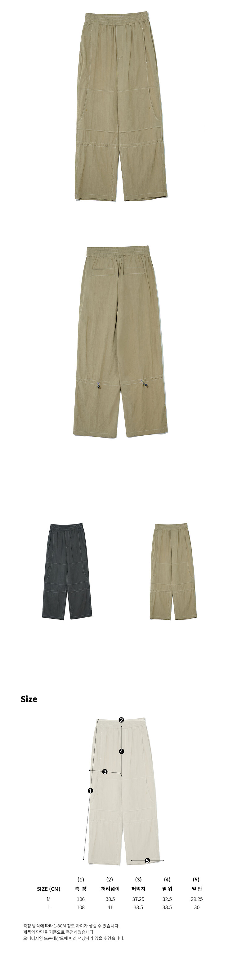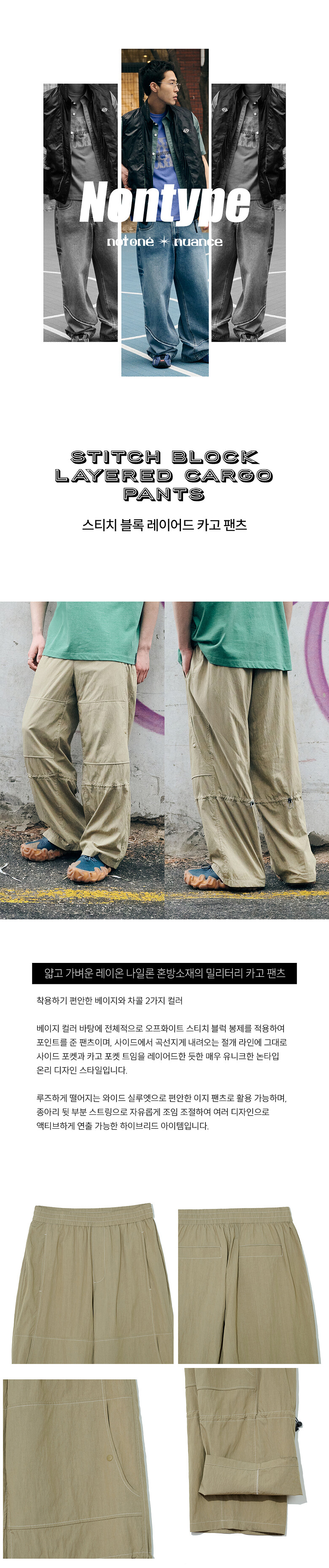 - 베이지 컬러 바탕에 전체적으로 오프화이트 스티치 블럭 봉제를 적용하여 포인트를 준 팬츠