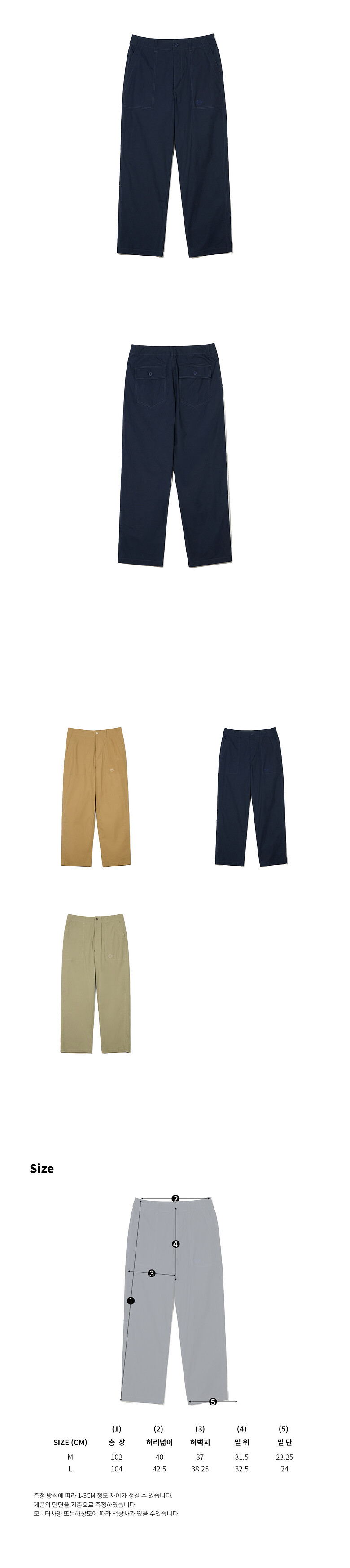 - 네이비, 진한 베이지, 카키 3컬러로 제안
