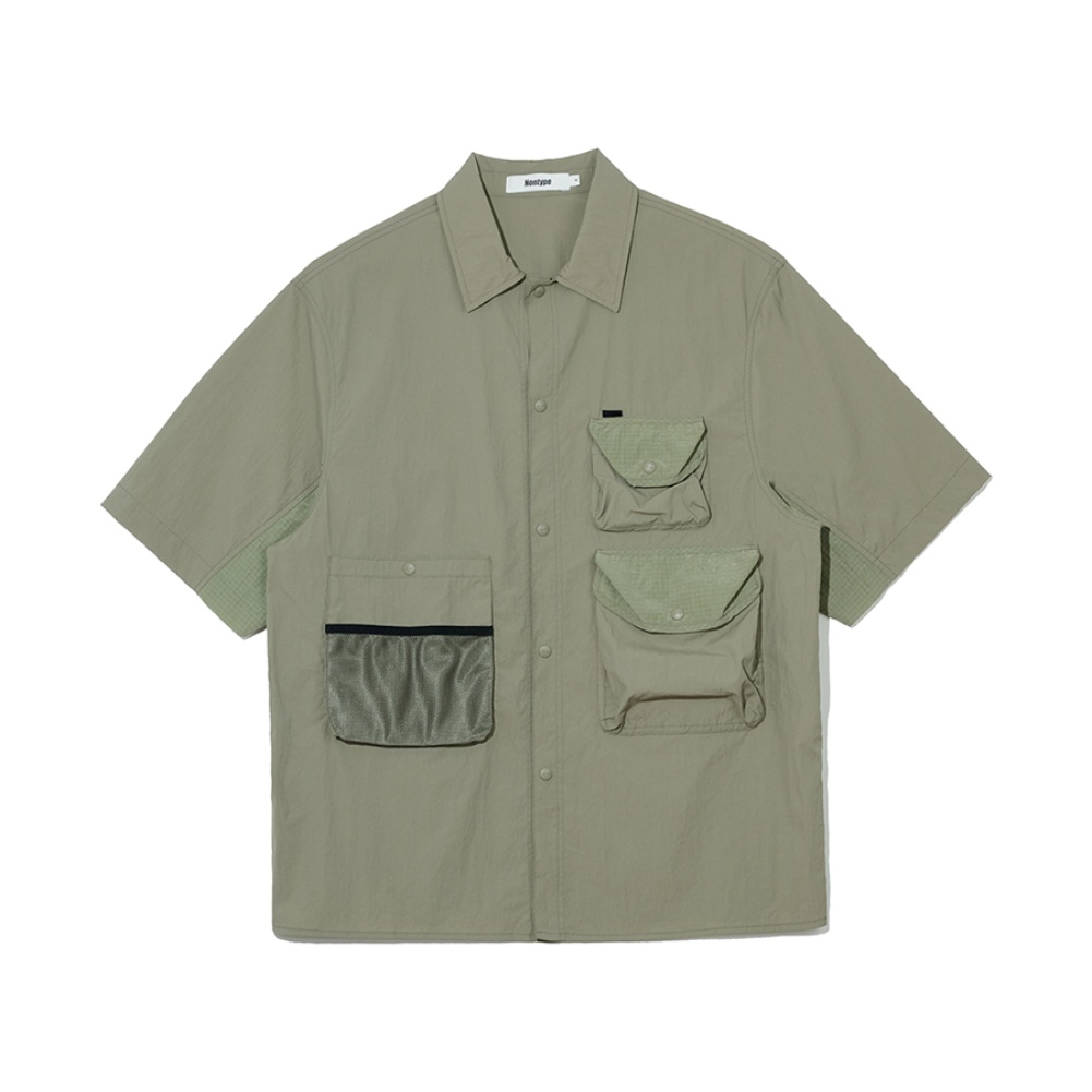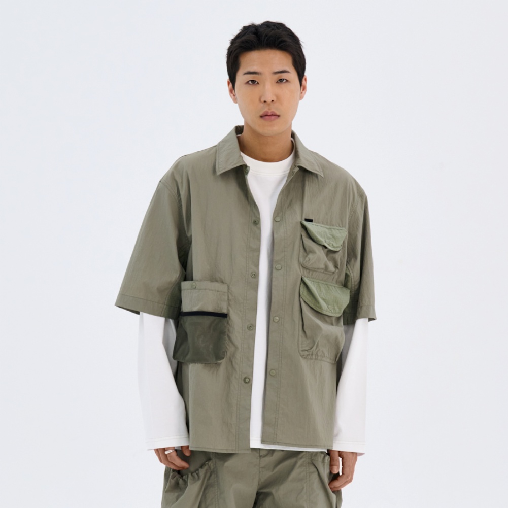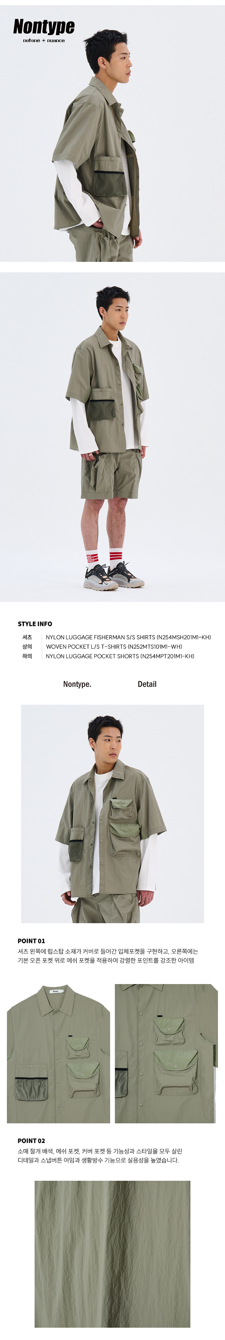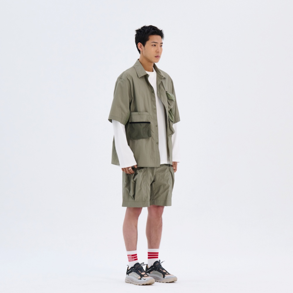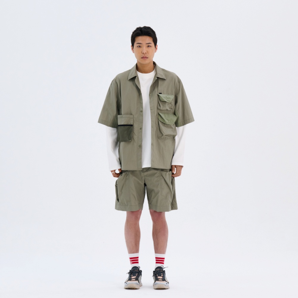 - 편안한 카키 컬러에 은은한 사각 패턴의 립스탑 소재로 믹스한 아이템