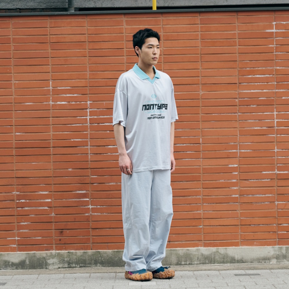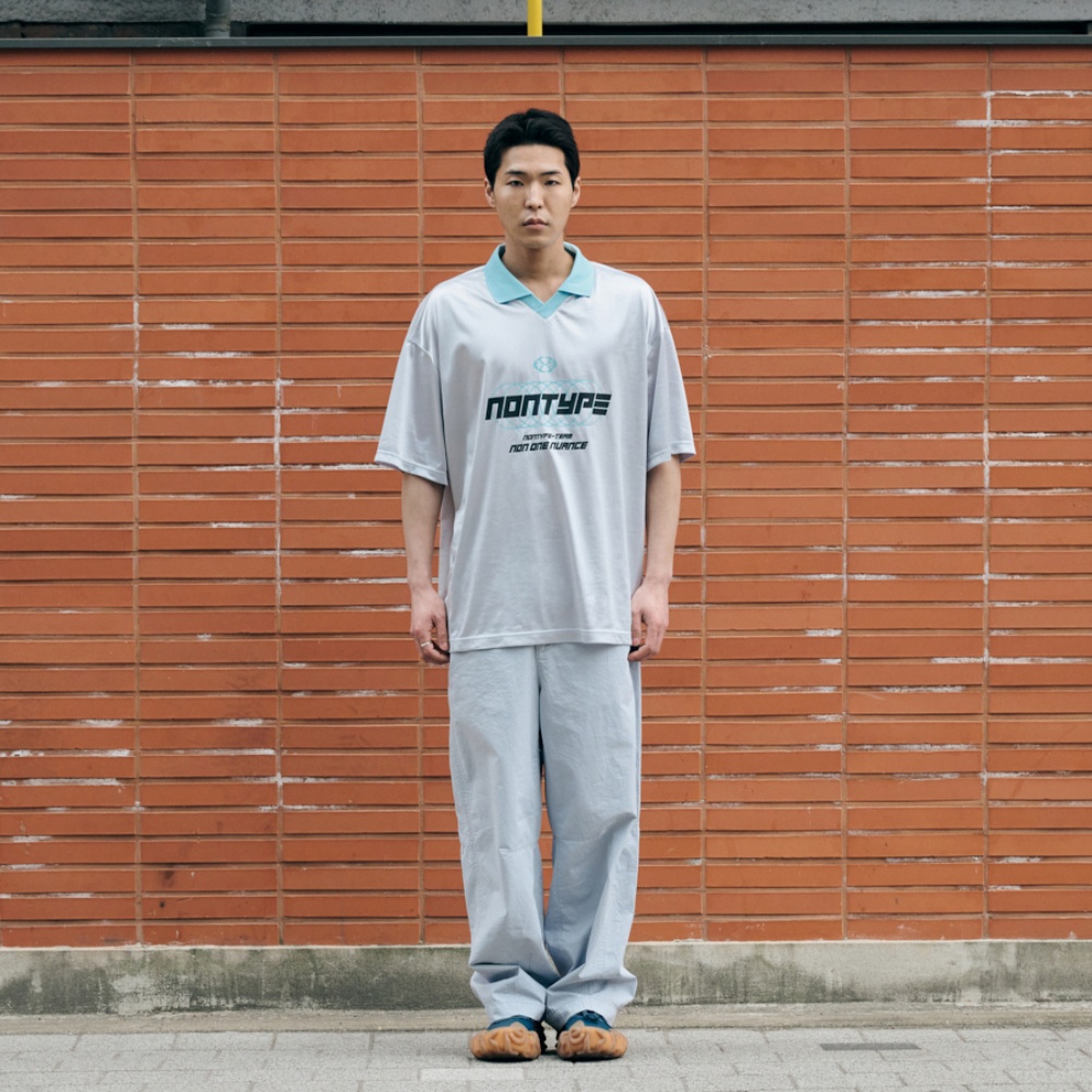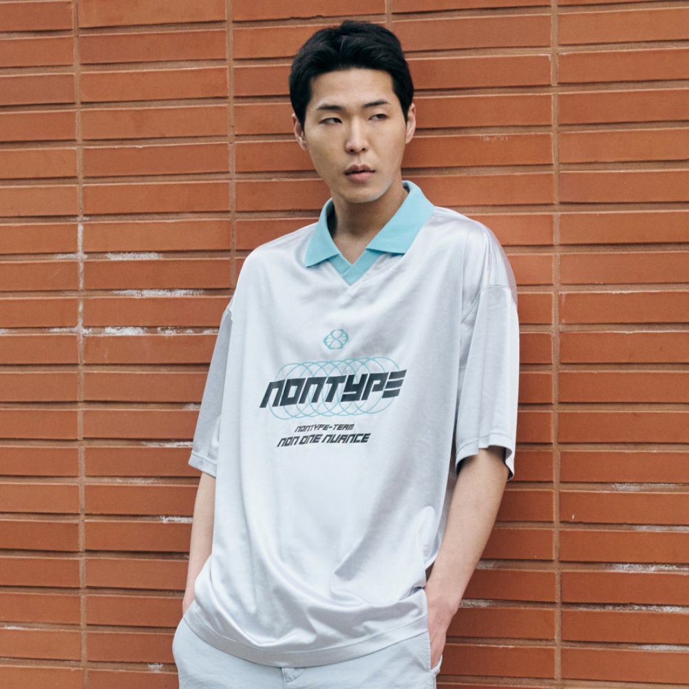- 풋볼팀 티셔츠를 논타입만의 스포티한 무드로 재해석한 하이브리드 스타일