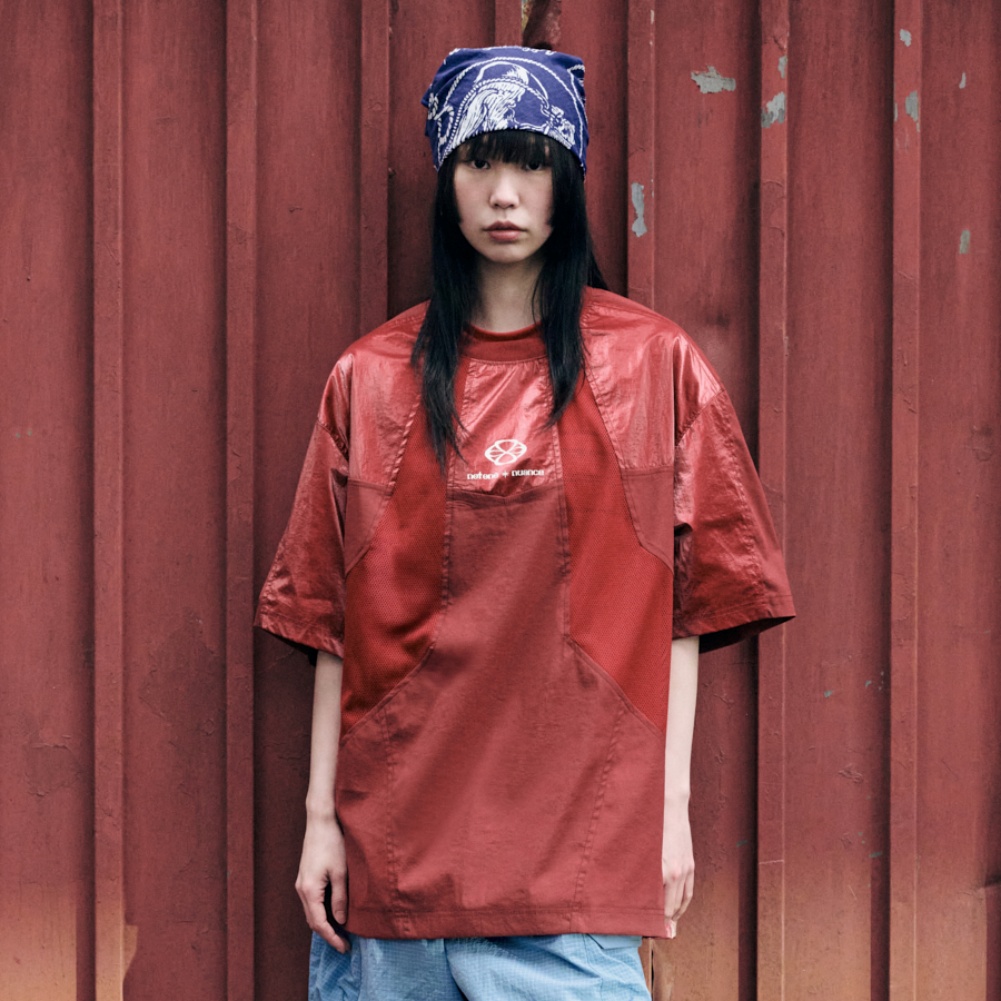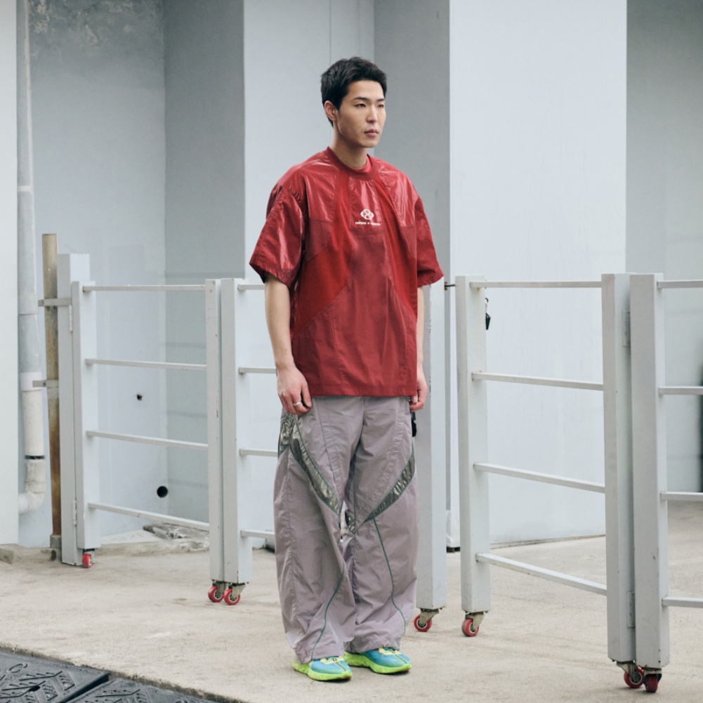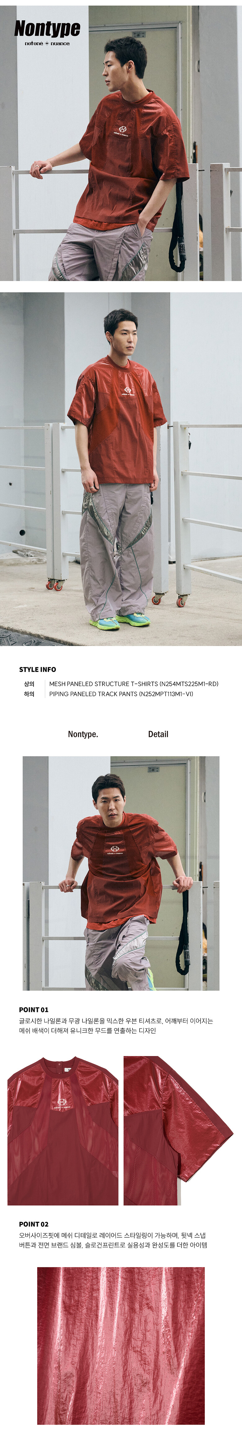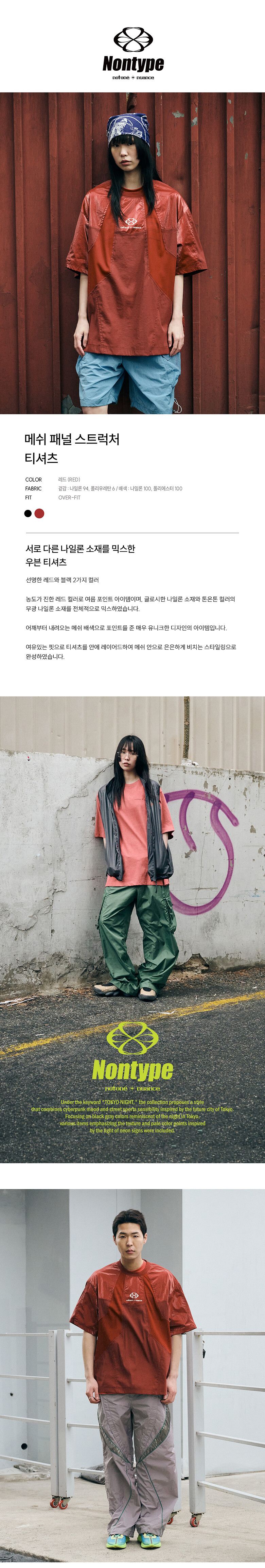 레드 : 겉감 나일론94%, 폴리우레탄6%, 배색1 나일론100%, 배색2 폴리에스터100%