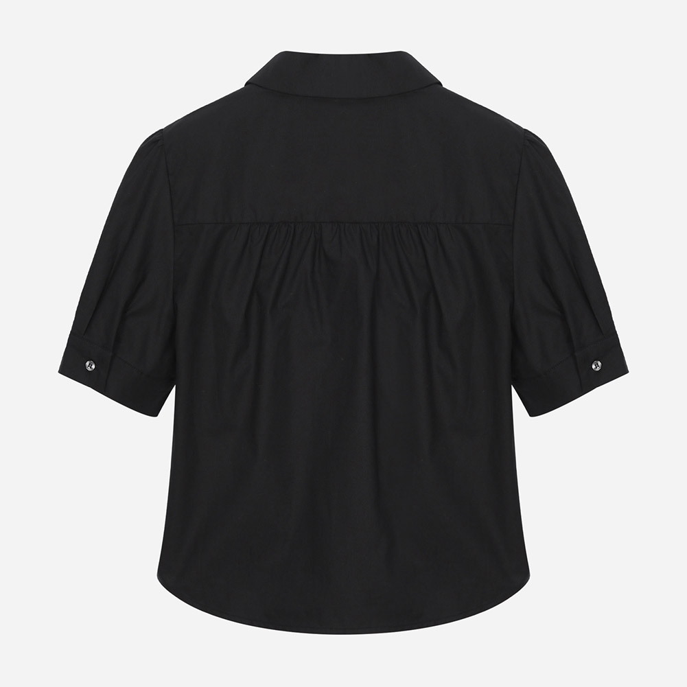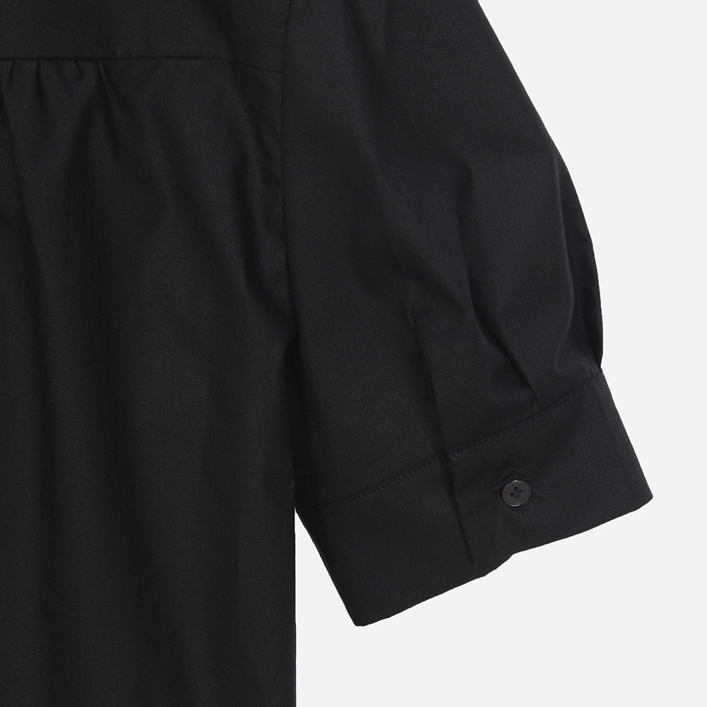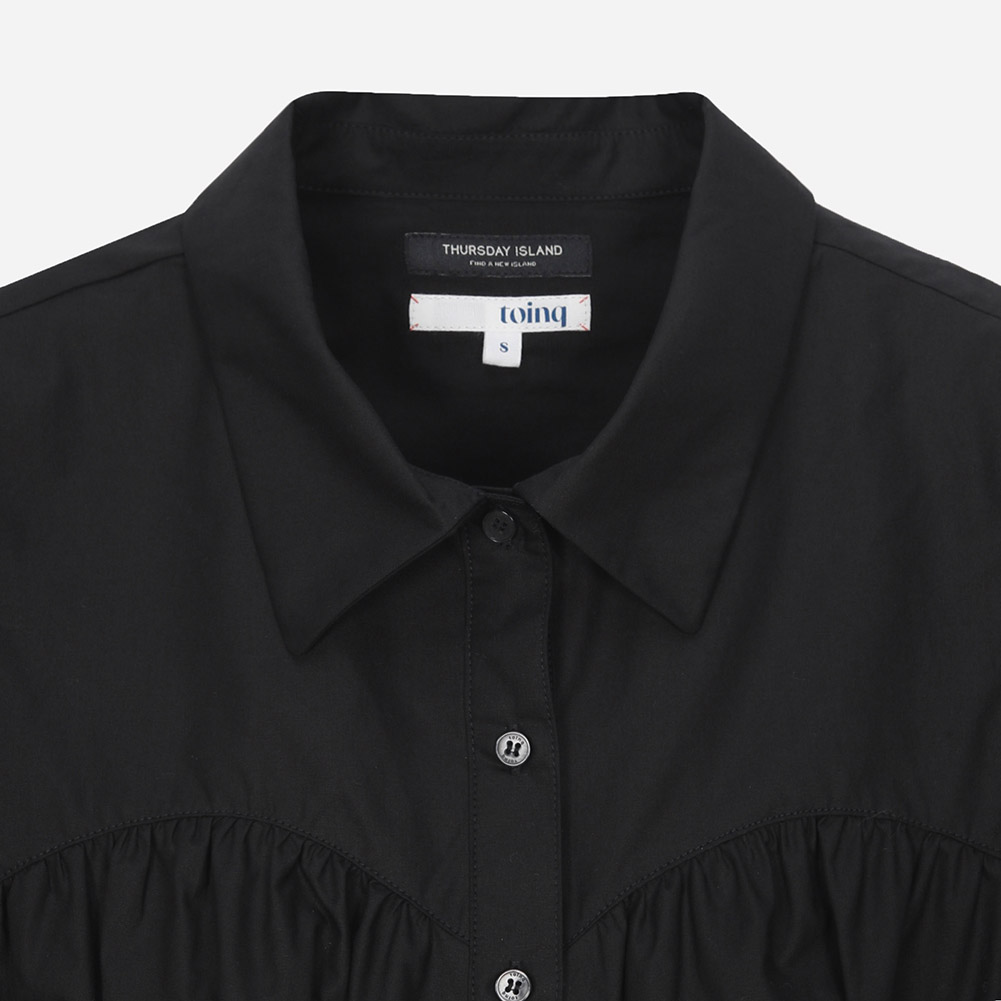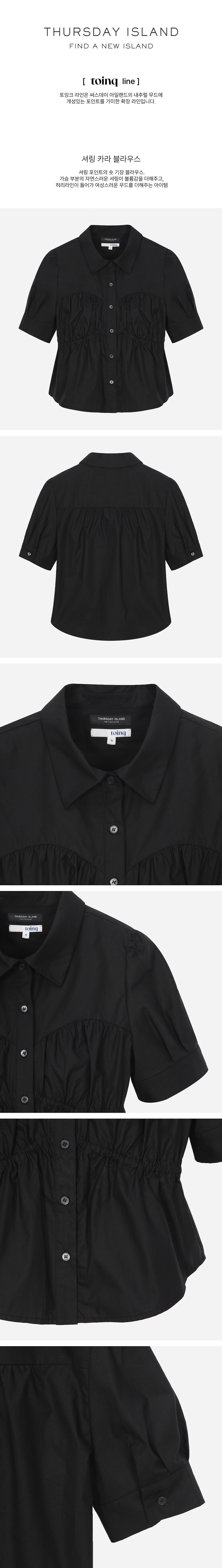 가슴 부분의 자연스러운 셔링이 볼륨감을 더해주고, 허리라인이 들어가 여성스러운 무드를 더해주는 아이템