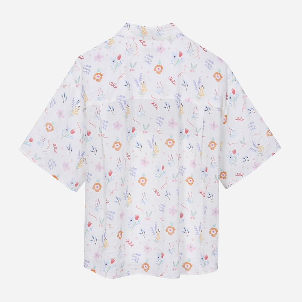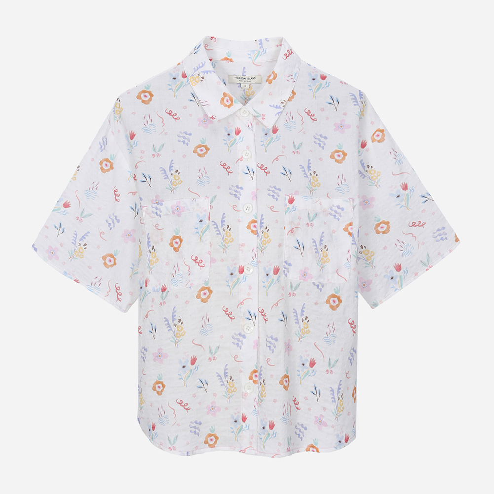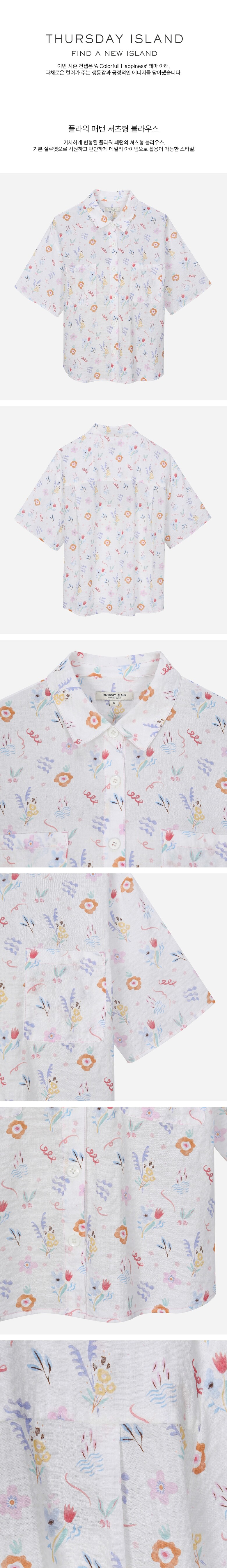 플라워 패턴 셔츠형 블라우스