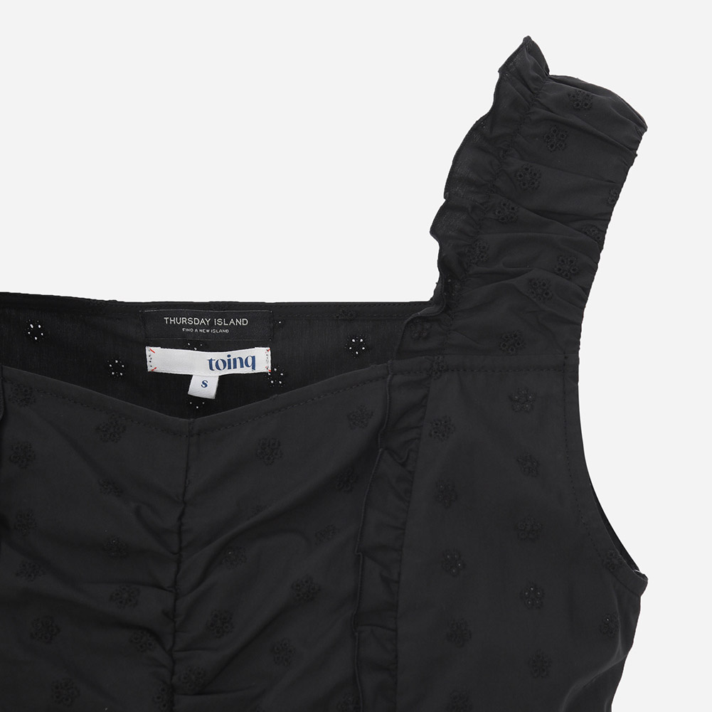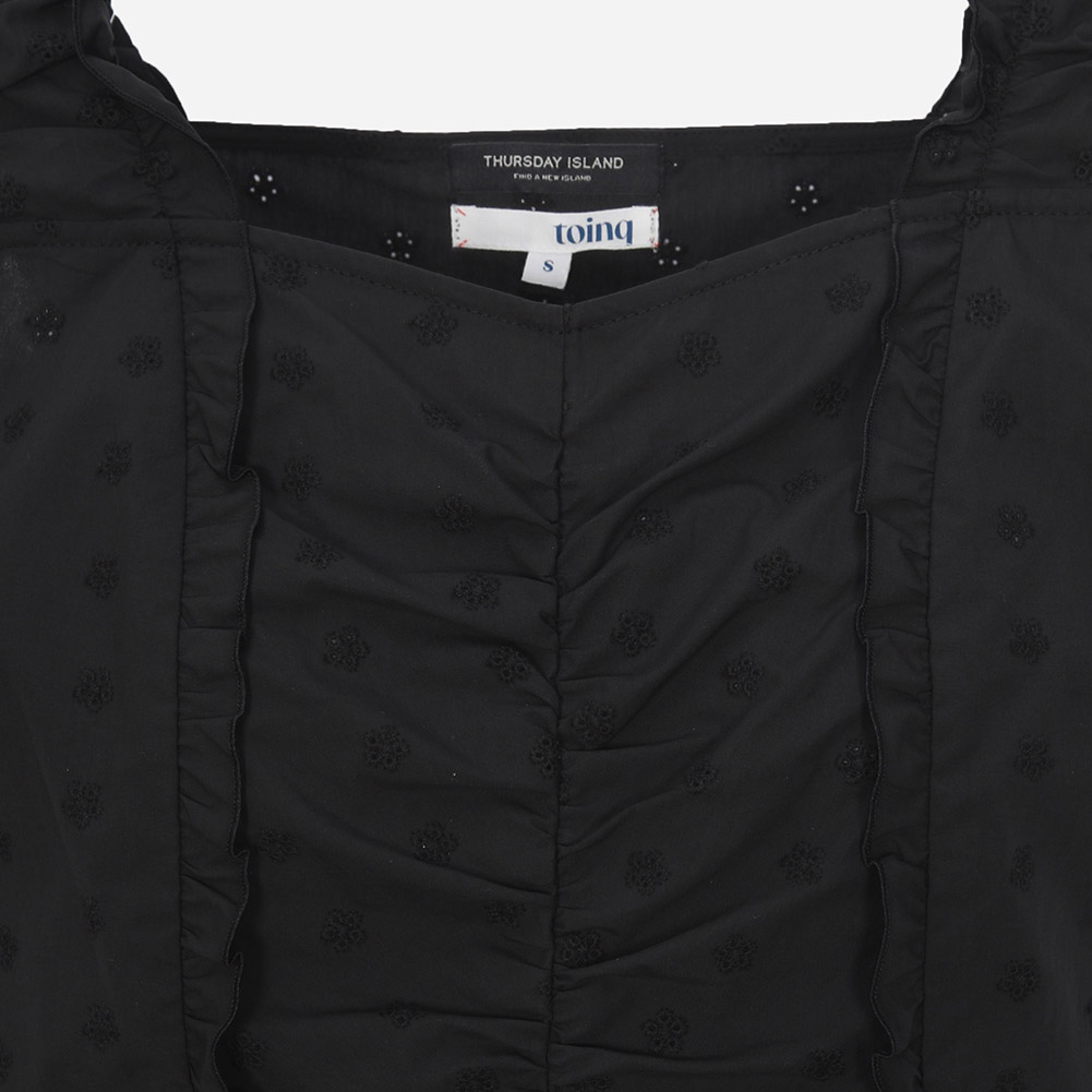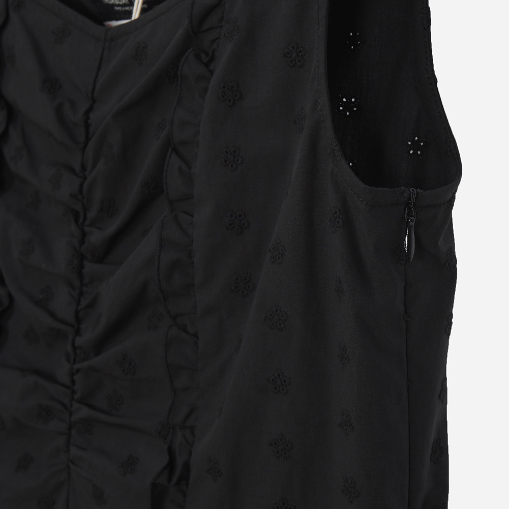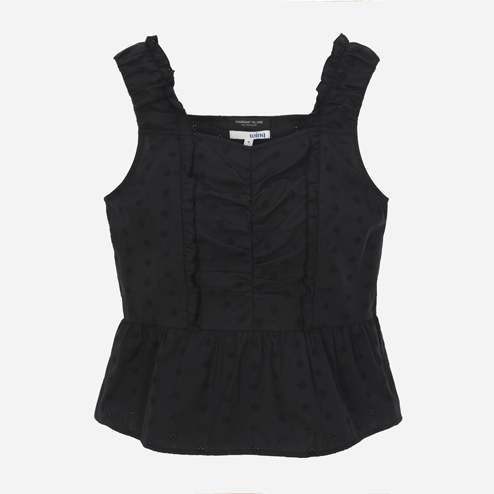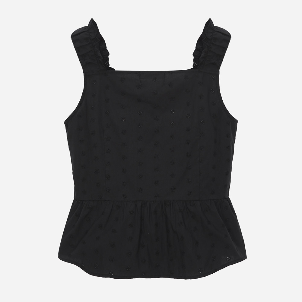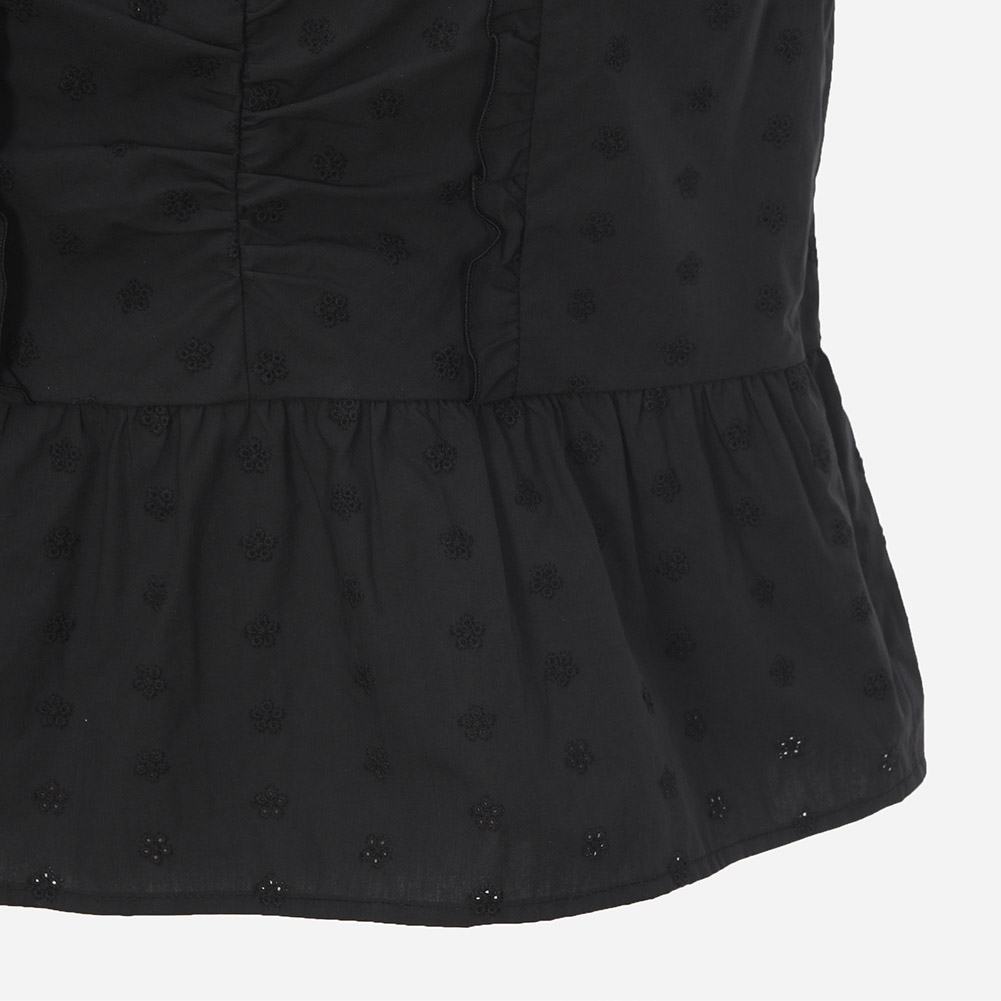 앞중심에 셔링이 있어 여성스러운 느낌을 주고, 캐주얼한 팬츠 아이템과 코디가 용이한 아이템.
