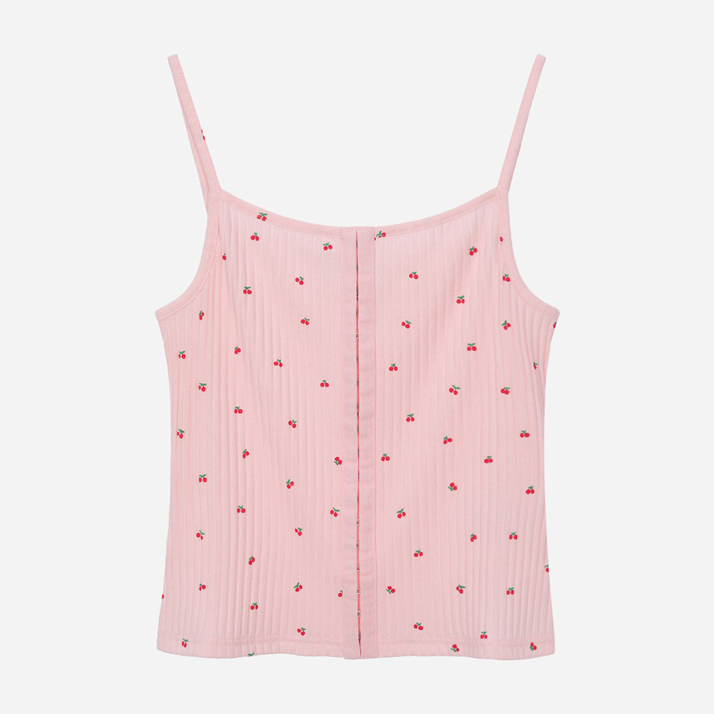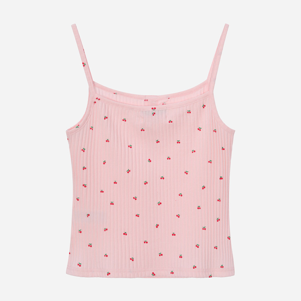 체리가 모티브가 프린트된 슬리브리스 티셔츠.