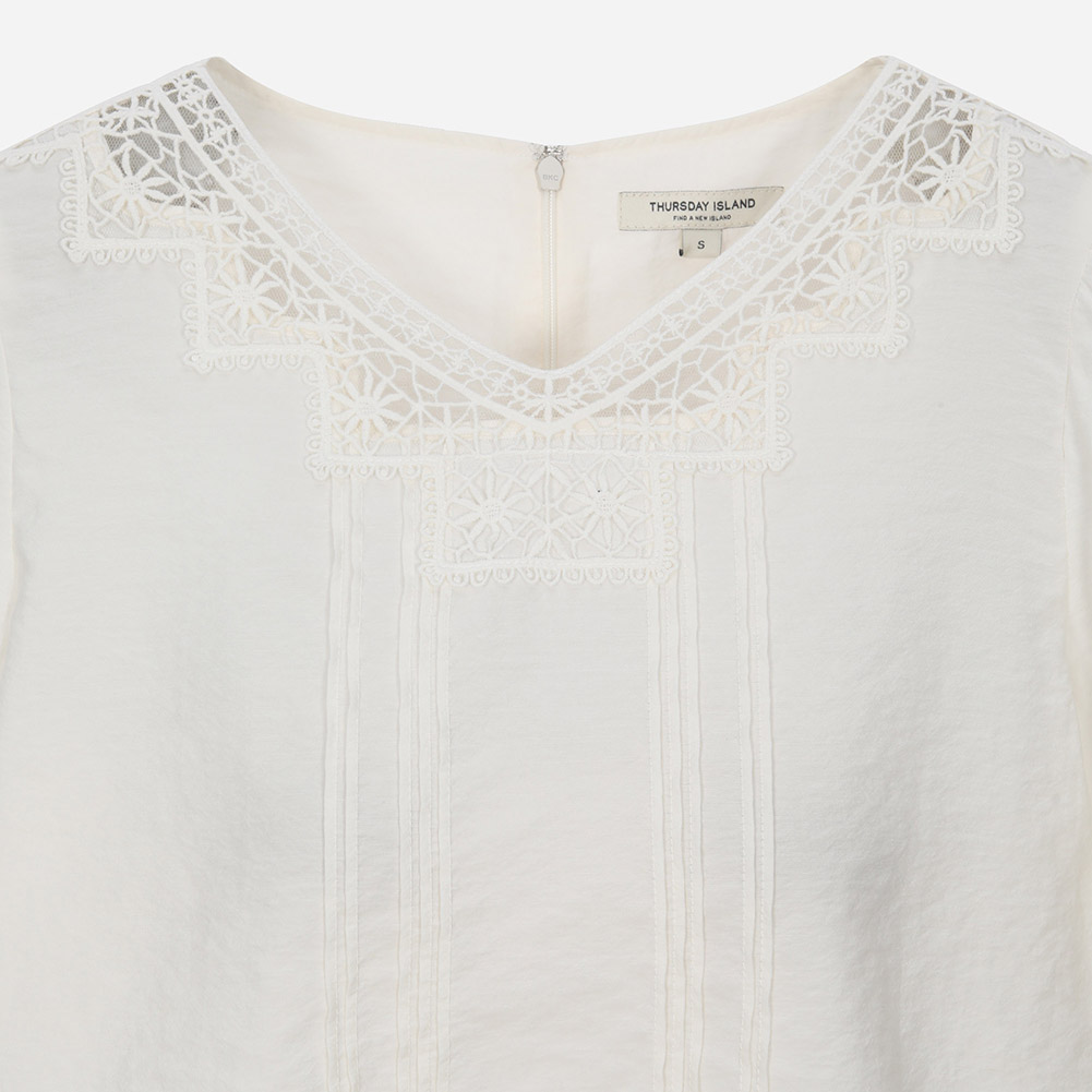 레이스 패치 크롭 블라우스