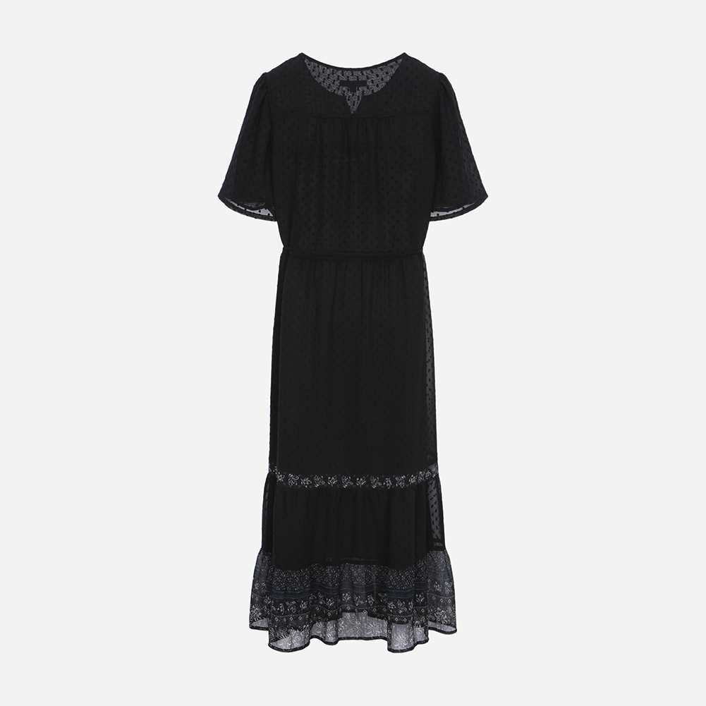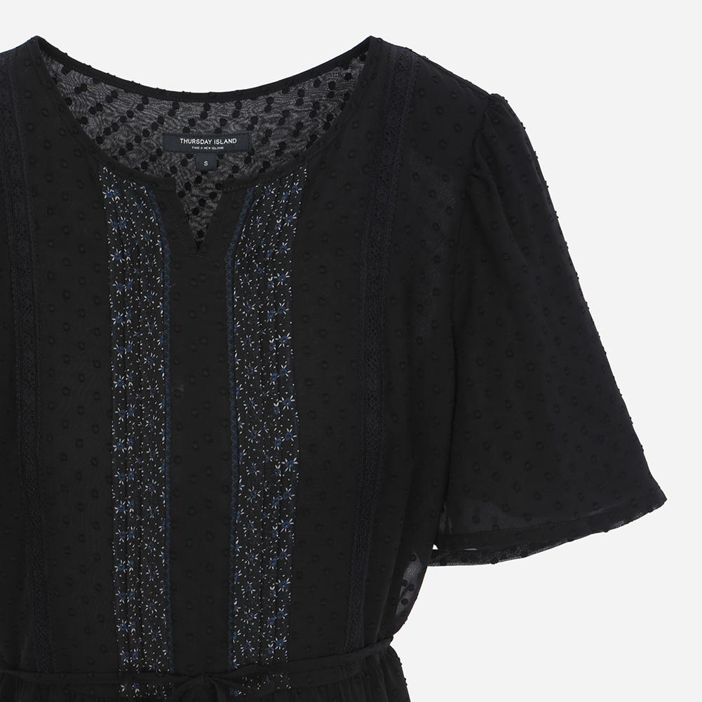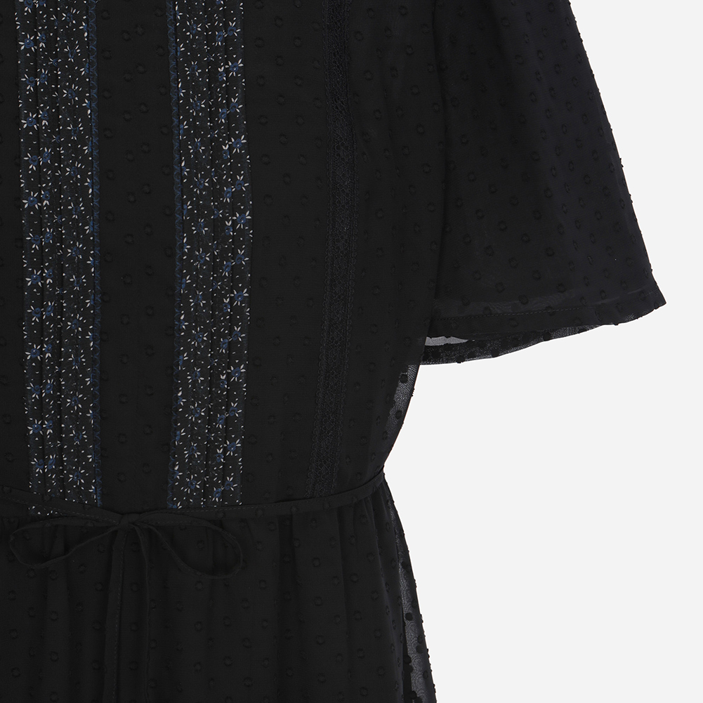 제원단의 벨트로 실루엣 변형이 가능한 여성스러운 스타일의 아이템.