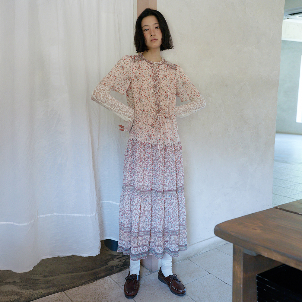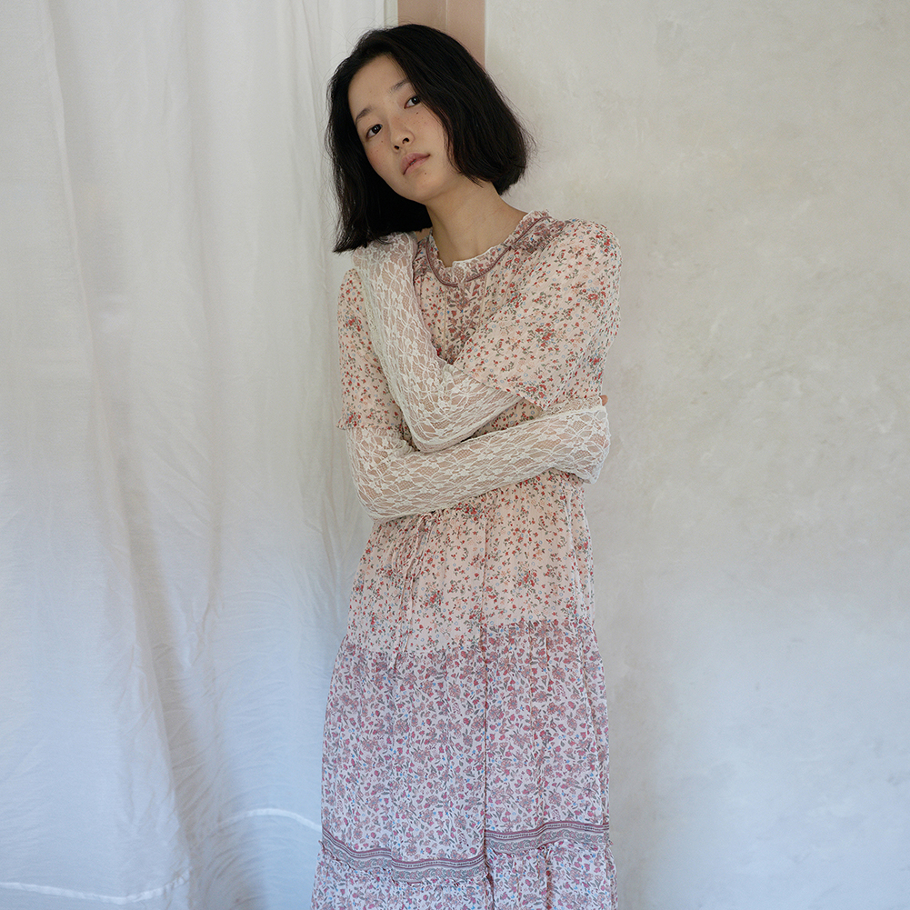 절개와 프릴 디테일을 사용해 여성스러운 무드를 주는 스타일.