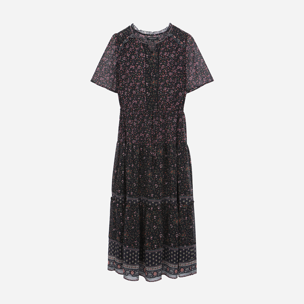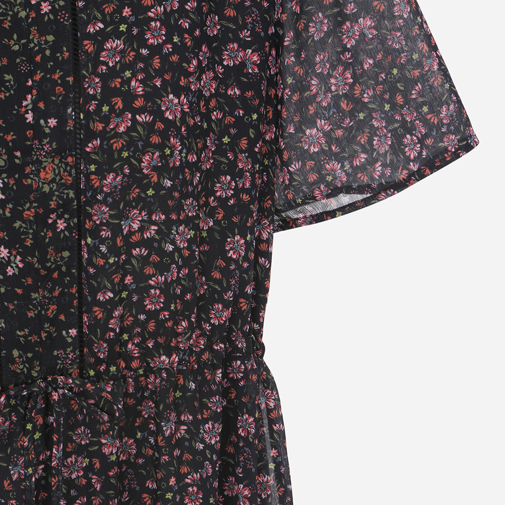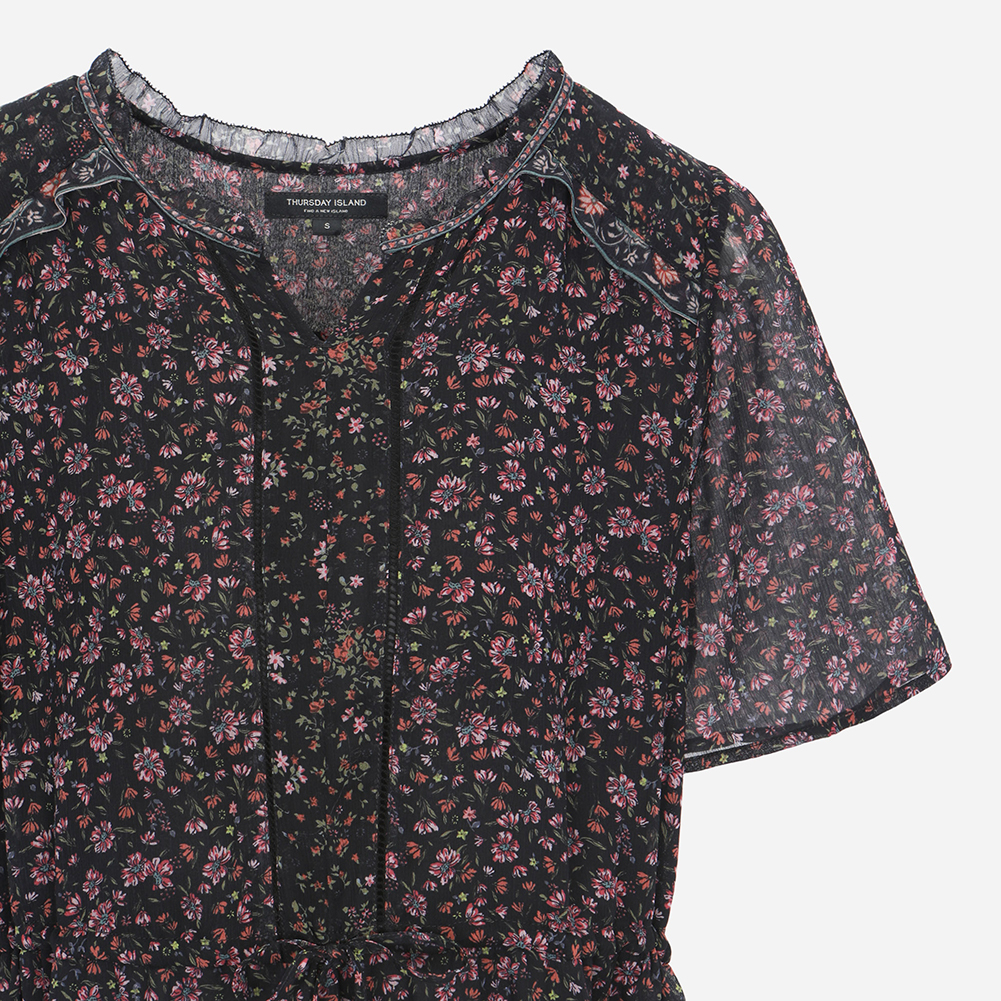 절개와 프릴 디테일을 사용해 여성스러운 무드를 주는 스타일.
