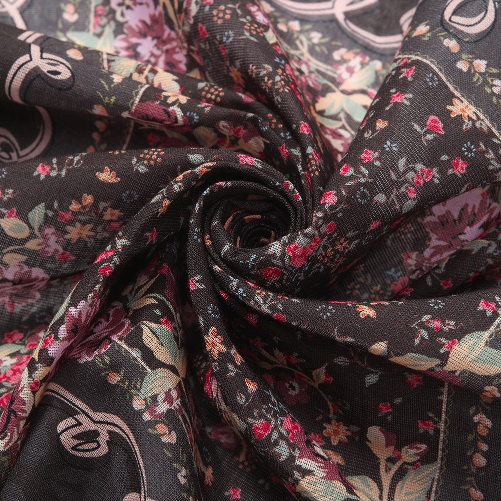 기하학 패턴의 프레임안에 그라데이션 플라워를 매치한 여성스러운 컬러의 반다나.
