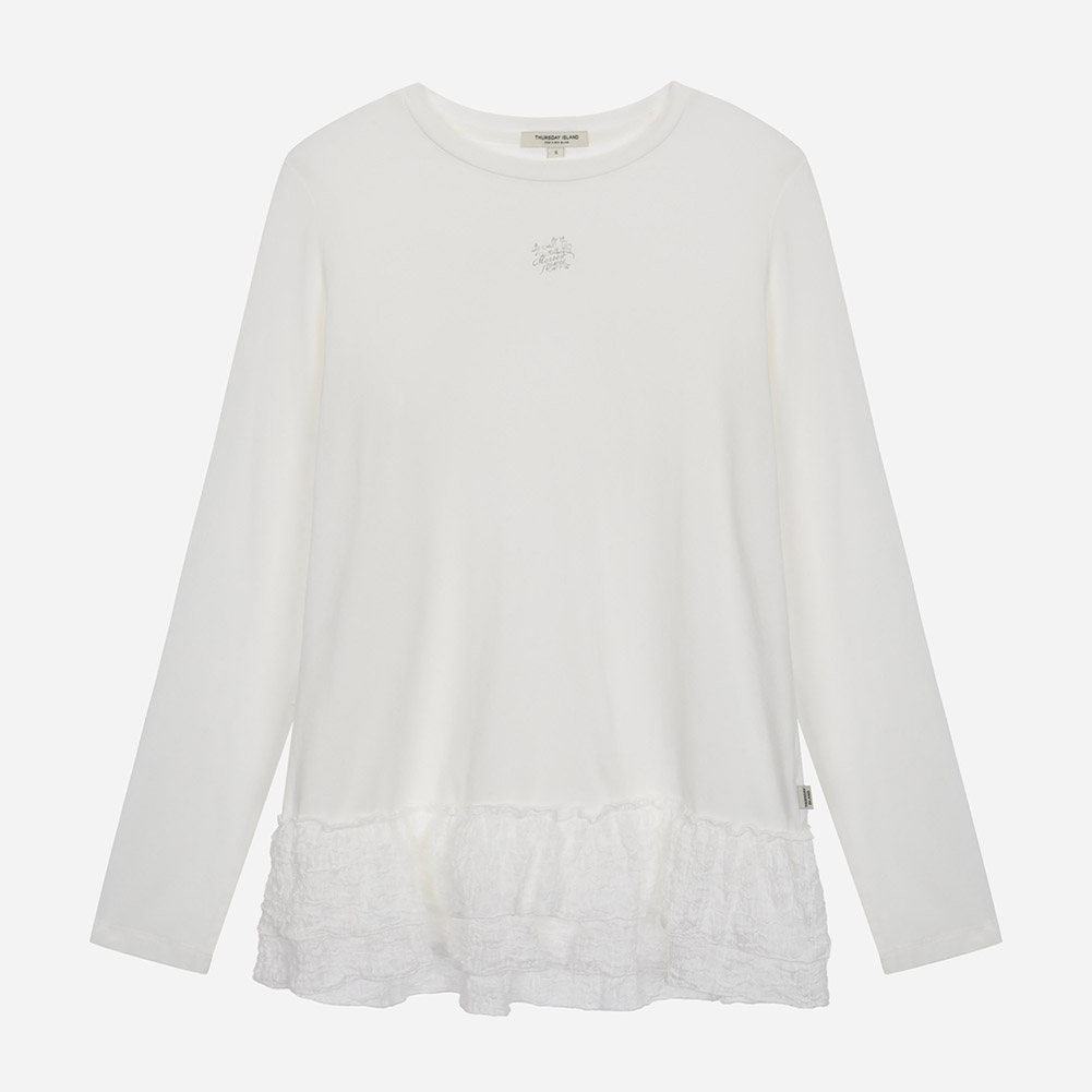 [KiiiKiii 착용] 레이스 배색 레이어드 티셔츠