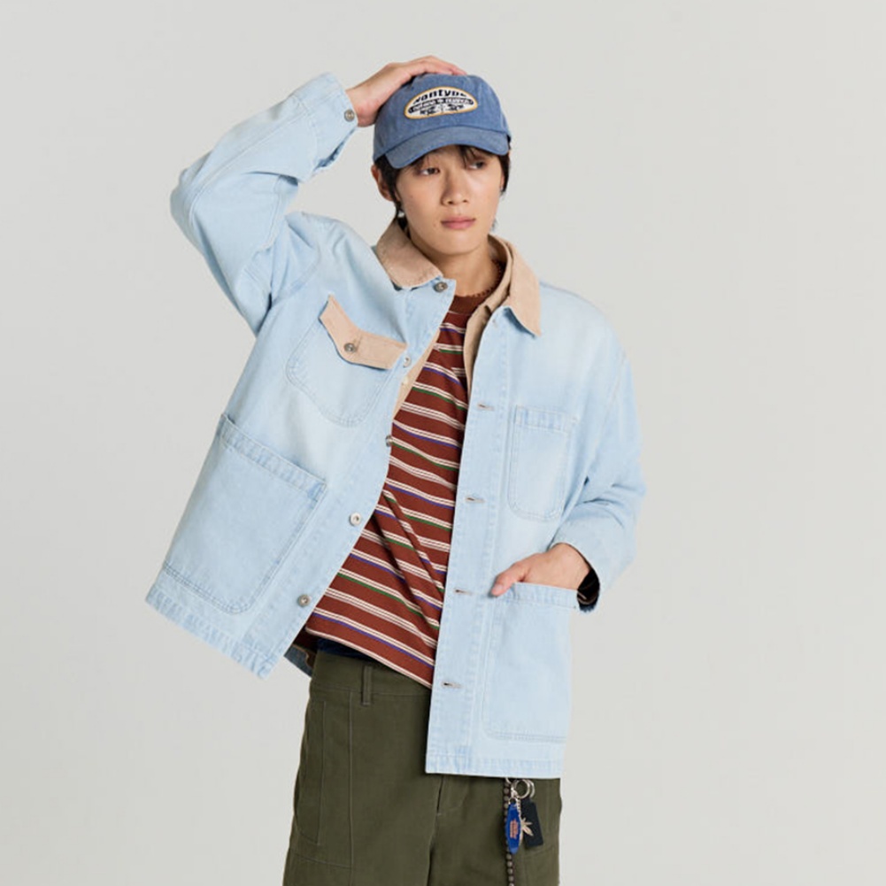 - 라이트블루 톤에서 탈색한 듯한 페이드 빈티지 워싱 가공
