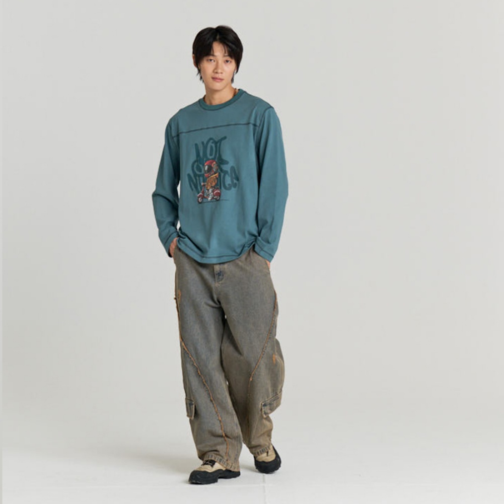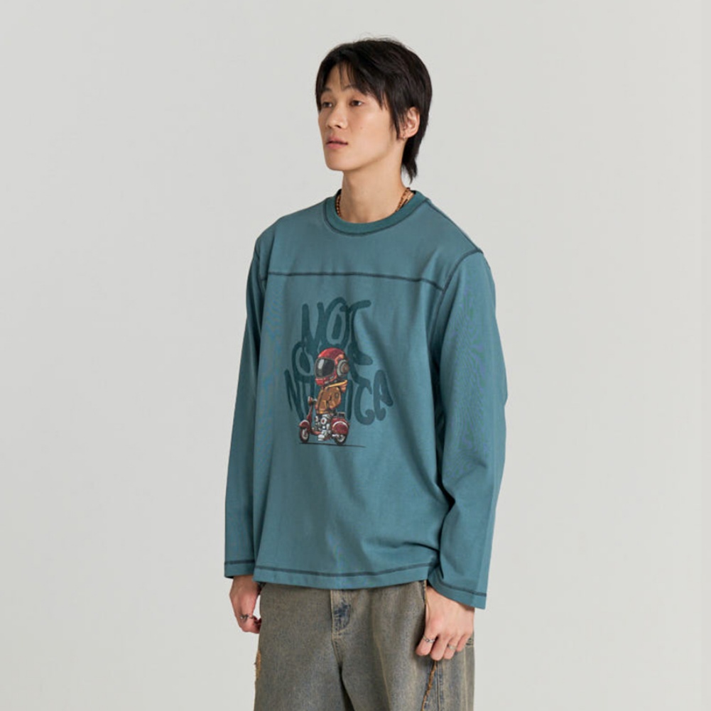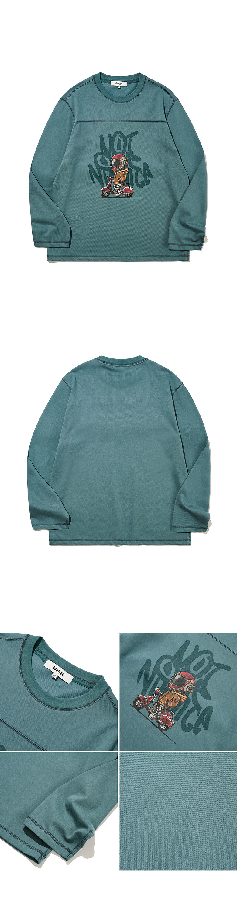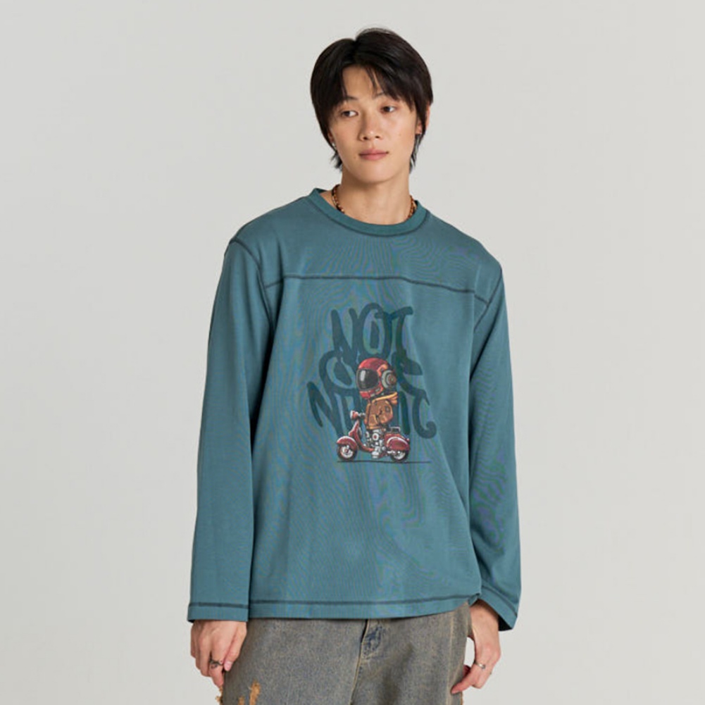 - 빈티지한 스쿠터와 시그니처 슬로건 일러스트로 80년대 무드를 논타입만의 프린트로 재해석한 아이템