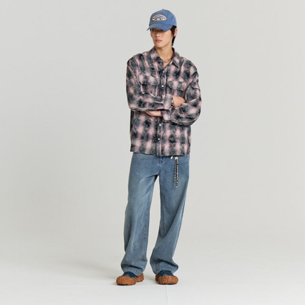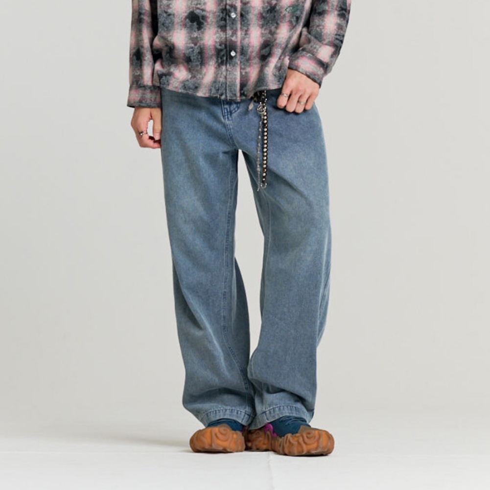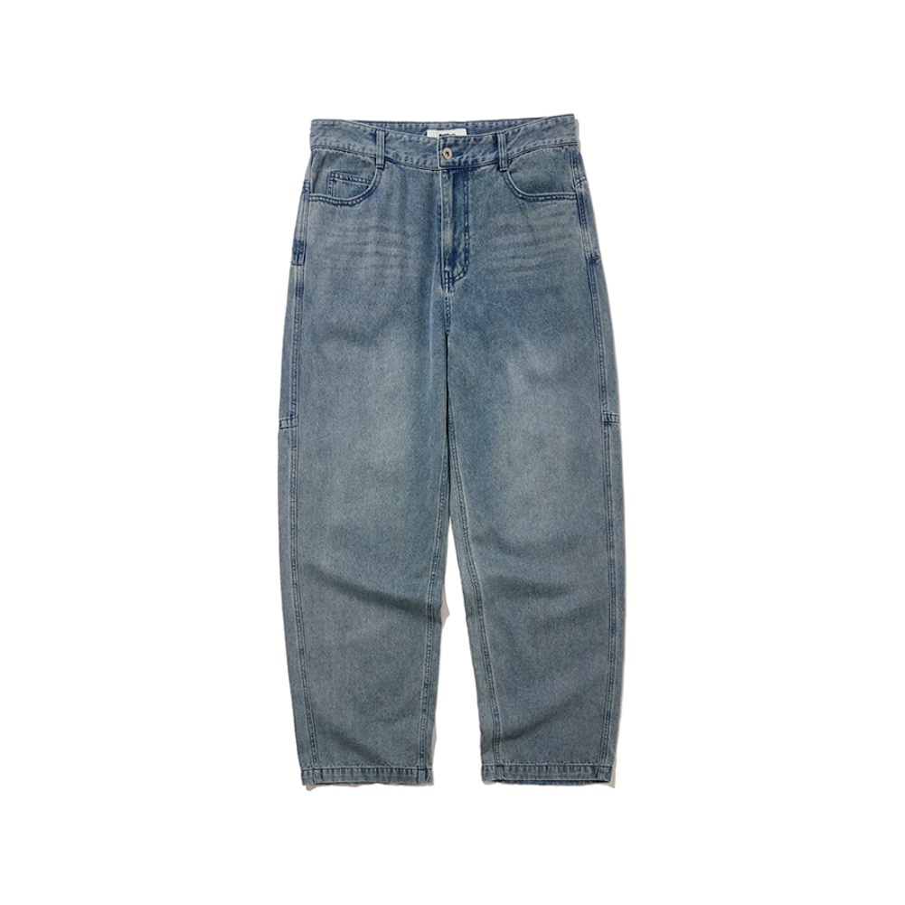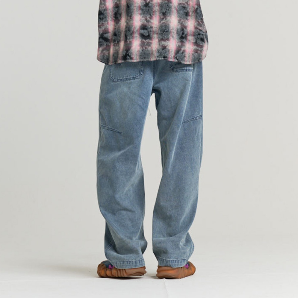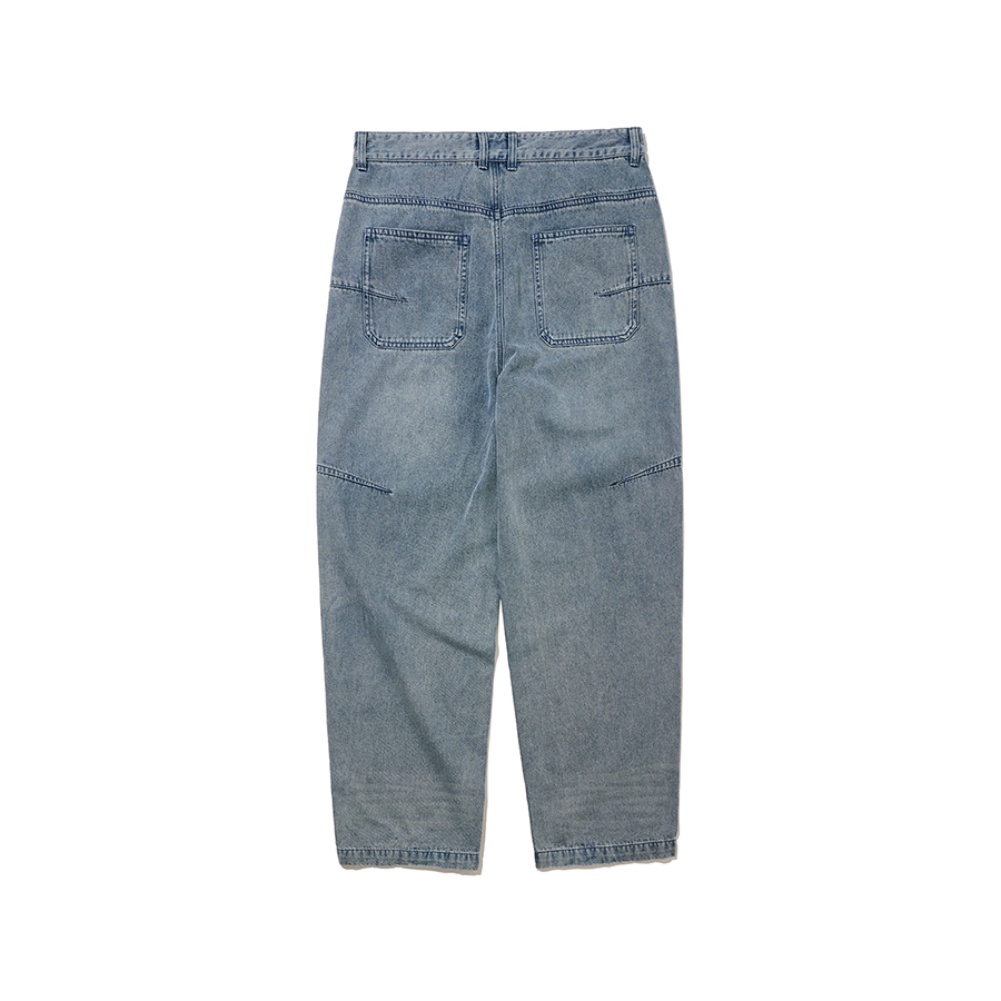- 연한 옐로우 톤이 묻어나는 바랜듯한 빈티지한 무드에 캣워싱 가공을 통하여 은은한 포인트를 준 베이직 데님