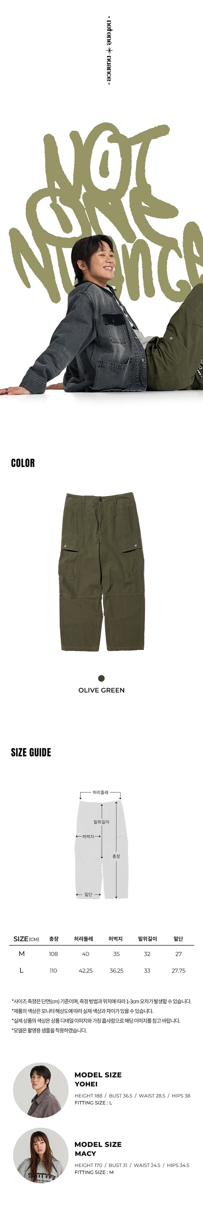 | 사이즈 | 허리둘레 | 엉덩이둘레 | 허벅지둘레 | 밑위길이 | 밑단둘레 | 총길이 |