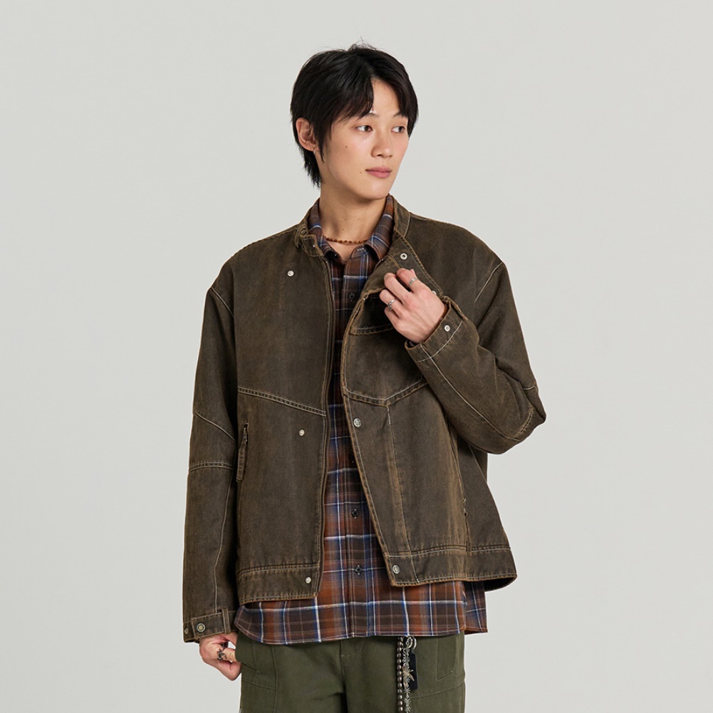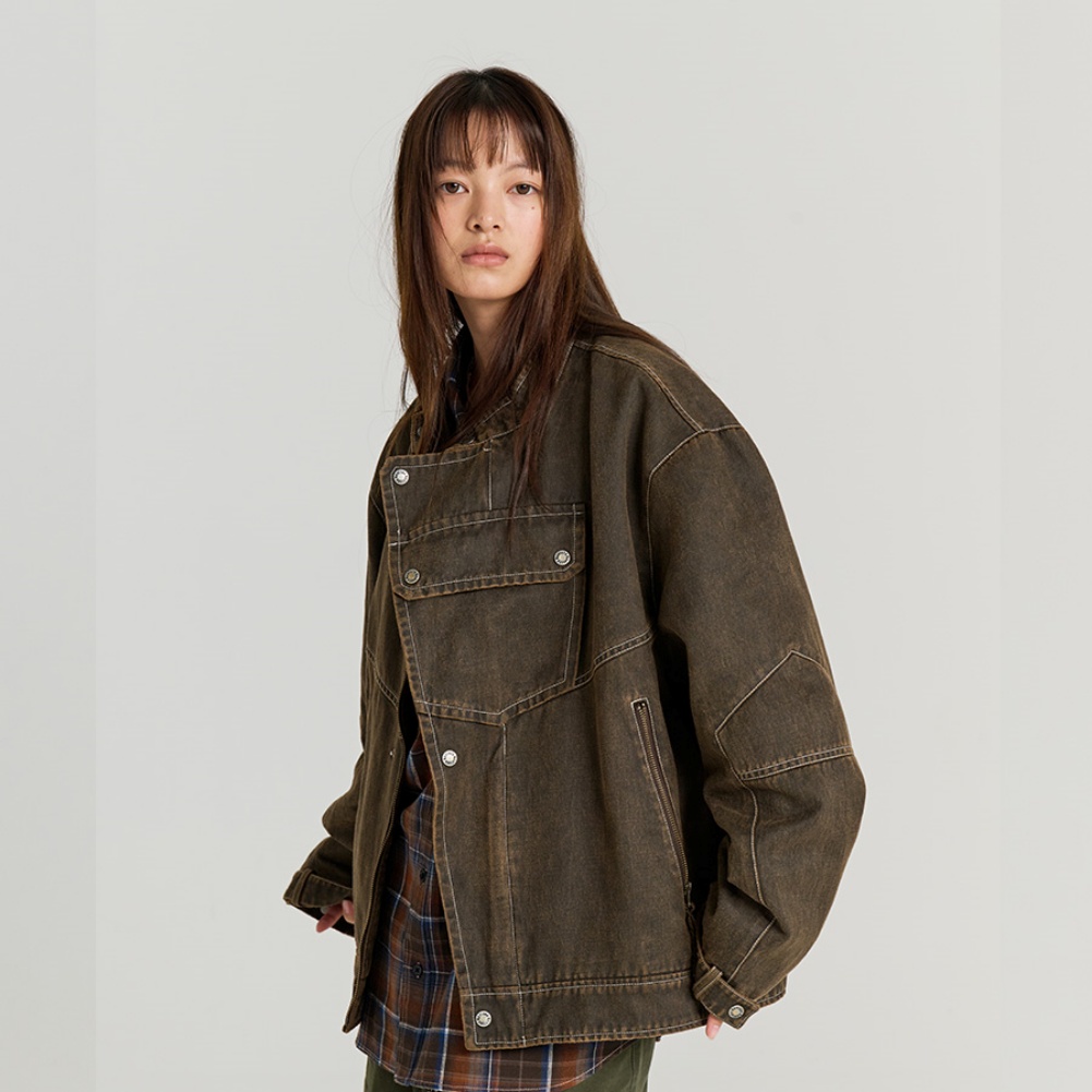 - 강한 워싱 기법으로 마치 세무와 같은 러프하면서도 부드러운 소재 무드를 부각시킨 브라운 컬러로 제안