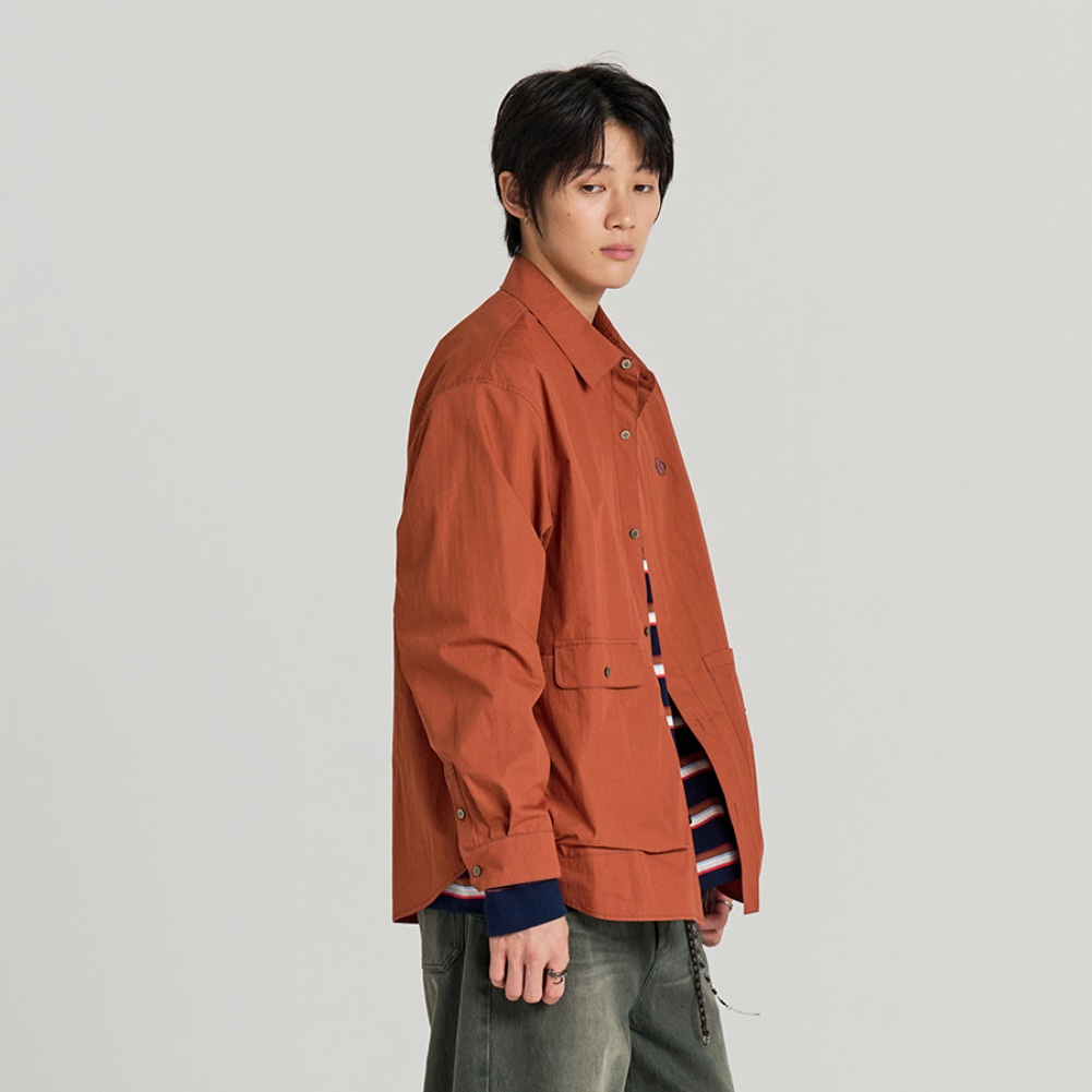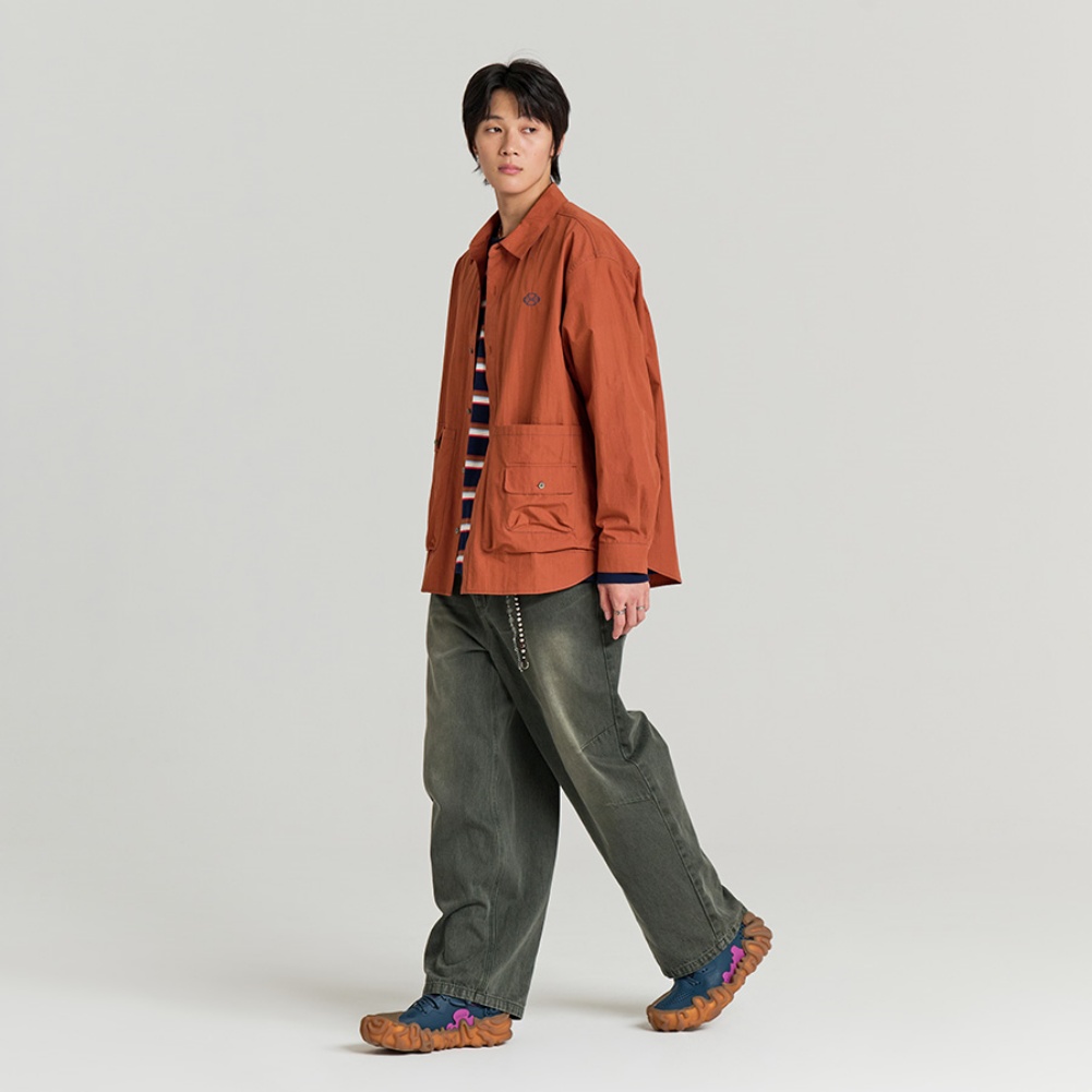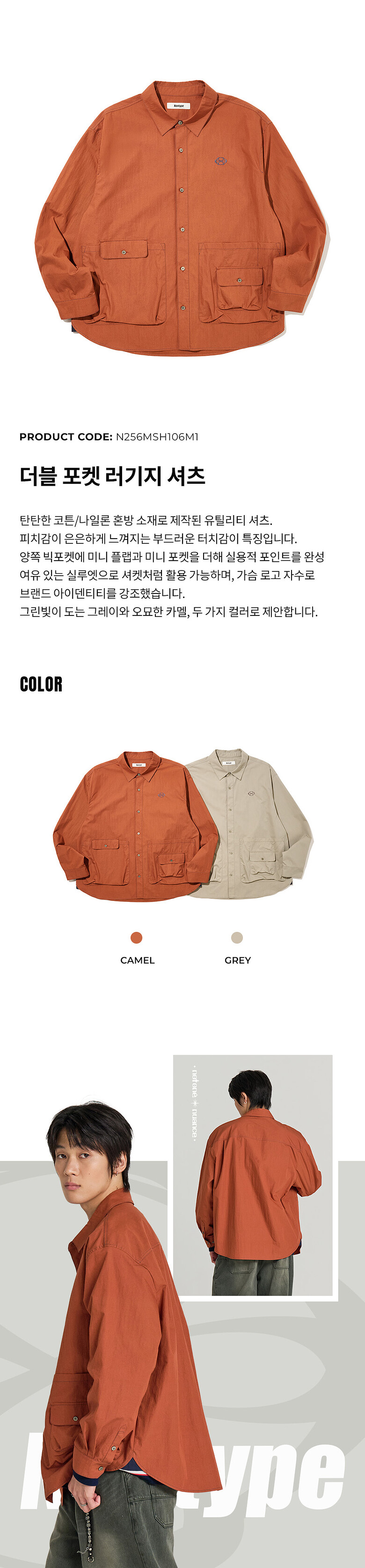 - 양쪽으로 배치된 빅포켓이 포인트로, 한 쪽은 미니 플랩 디테일과 다른 쪽은 포켓 위로 미니포켓을 더한 디자인