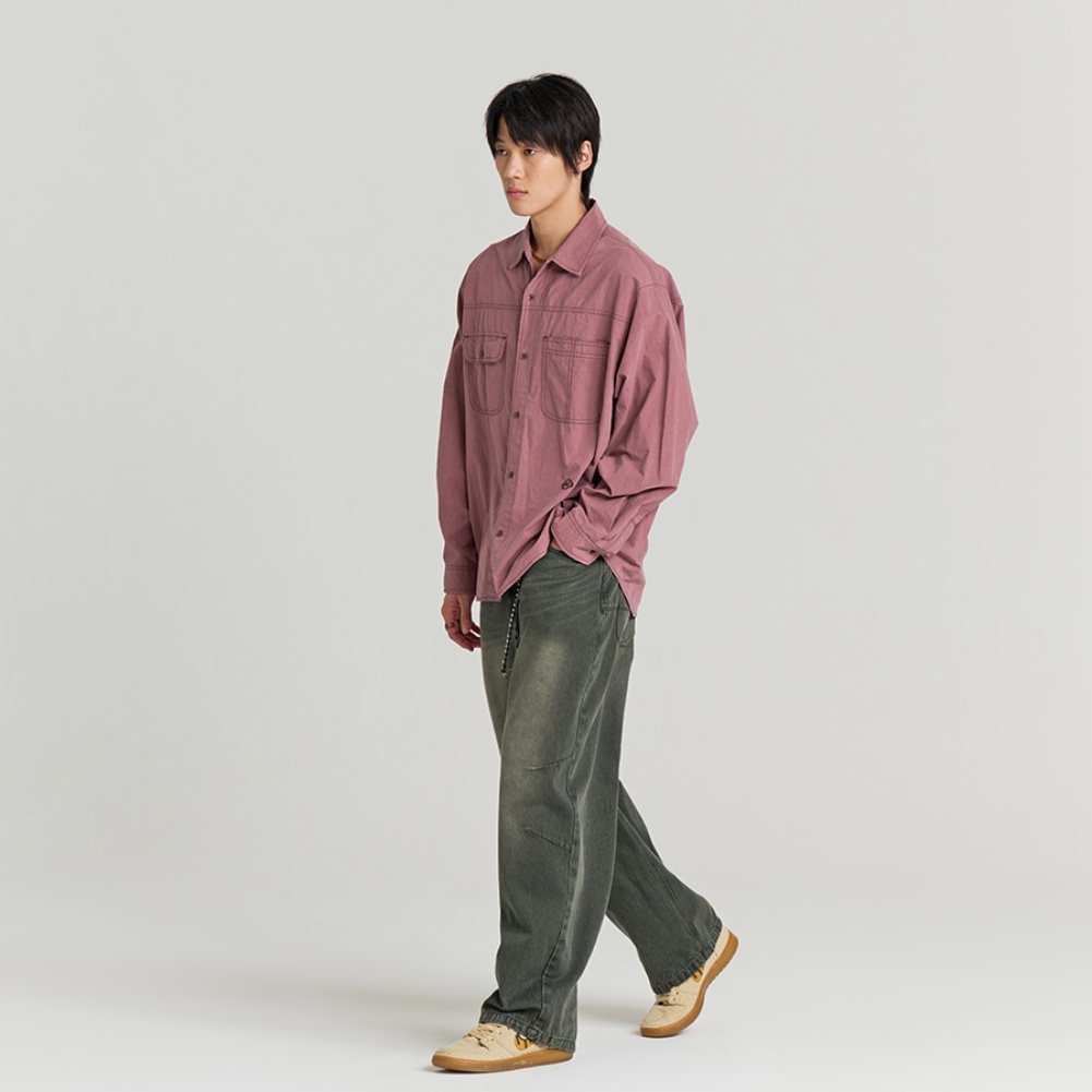 - 특수한 바이오 스톤워싱 기법으로 피치감이 도는 빈티지 텍스처 완성