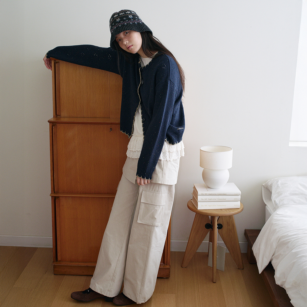 네이비 : 겉감 폴리에스터57%, 아크릴27%, 레이온8%, 나일론5%, 모3%