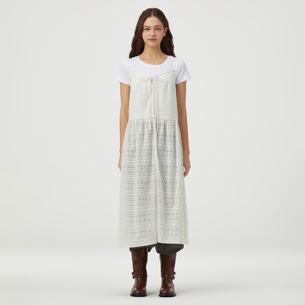 [KiiiKiii 착용] 풀오픈 레이어드 슬리브리스 원피스