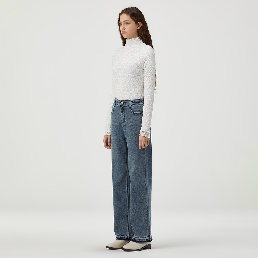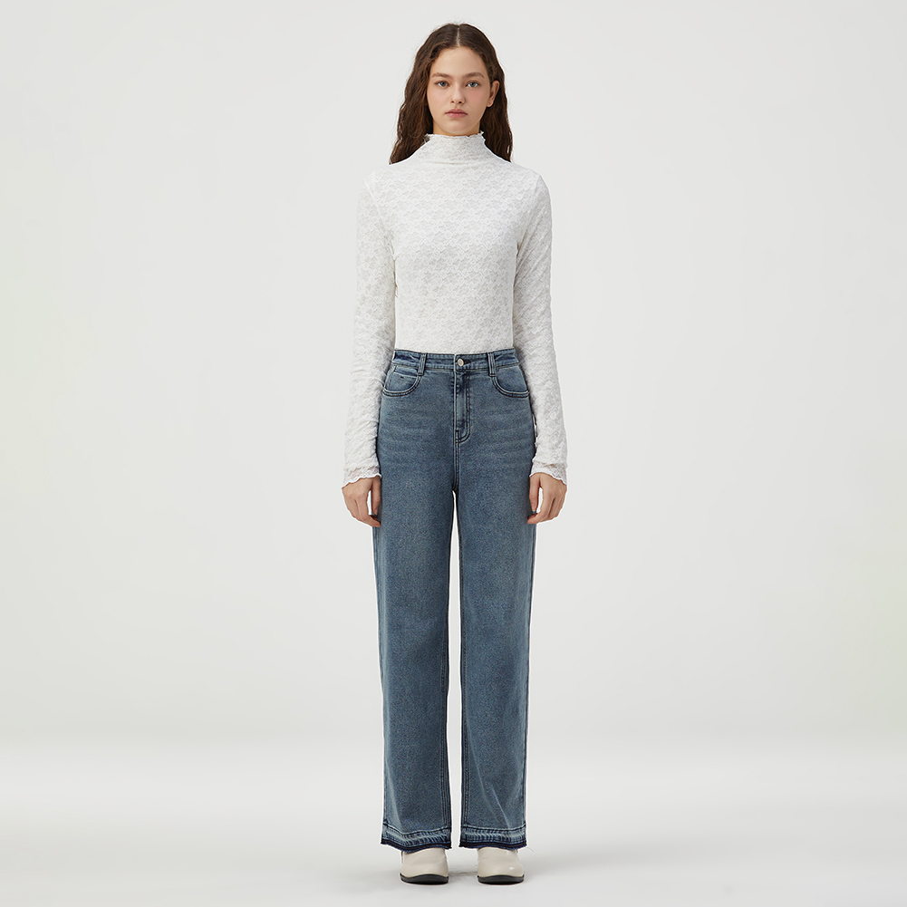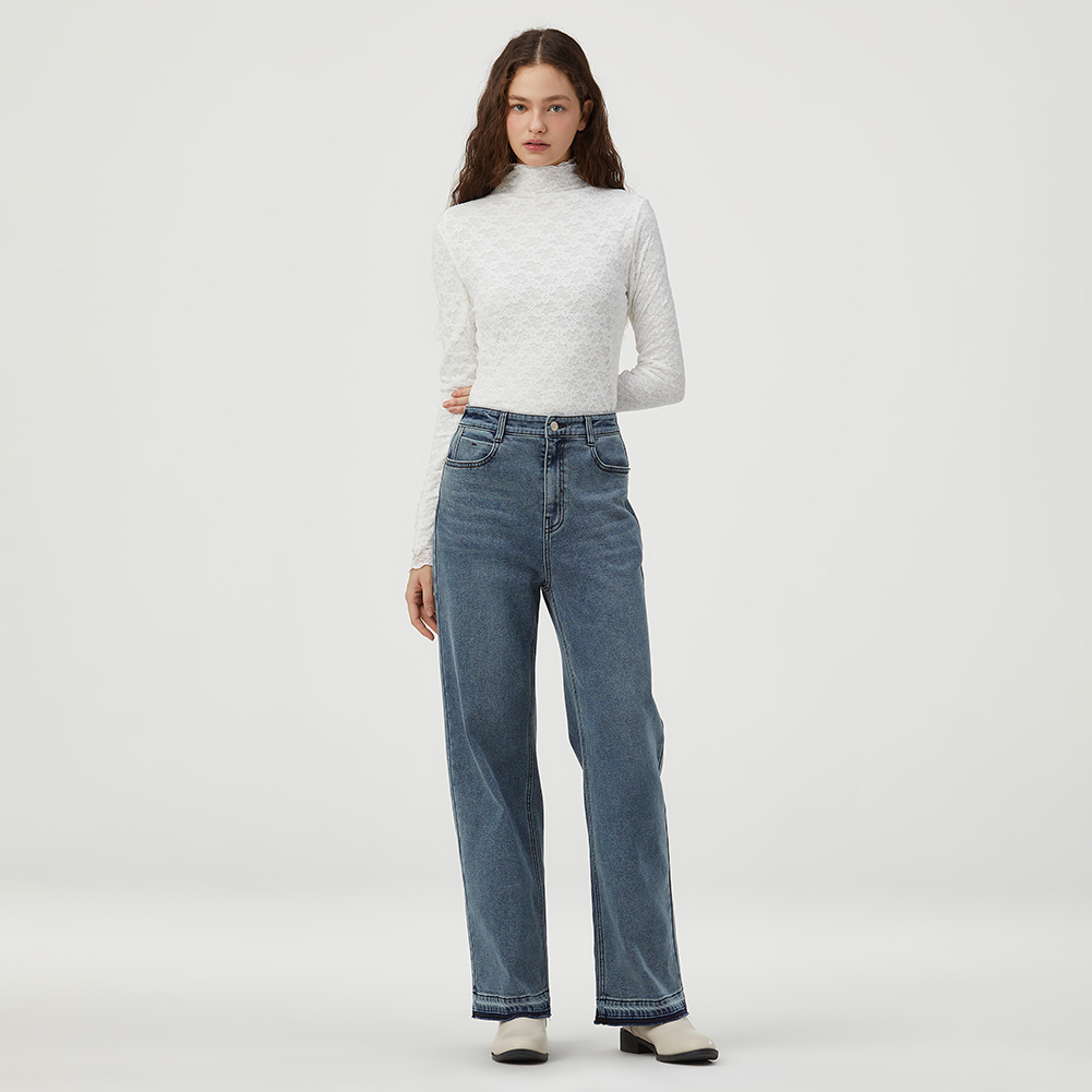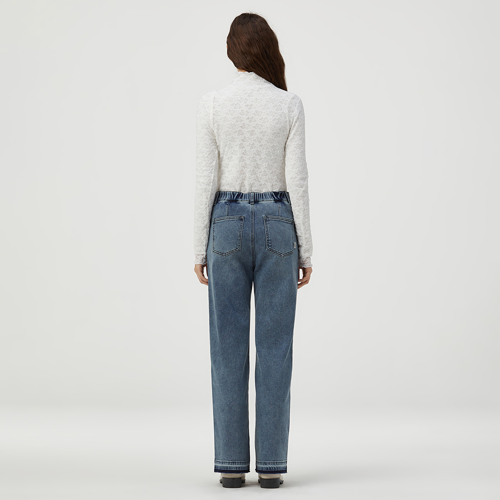 밑단 워싱자국으로 포인트 더했으며 뒤허리 밴딩이 내장되어 편안하게 착용 가능한 아이템.