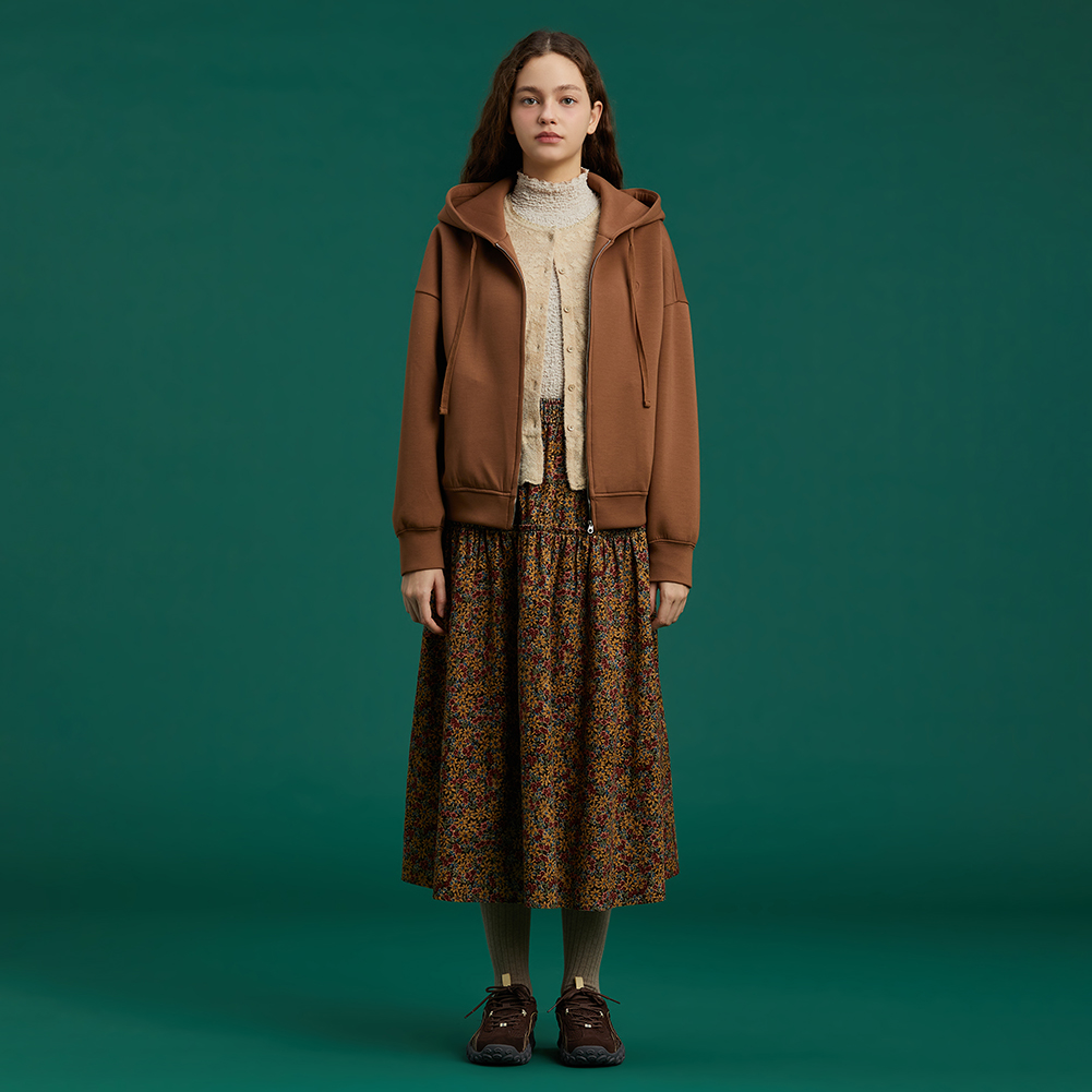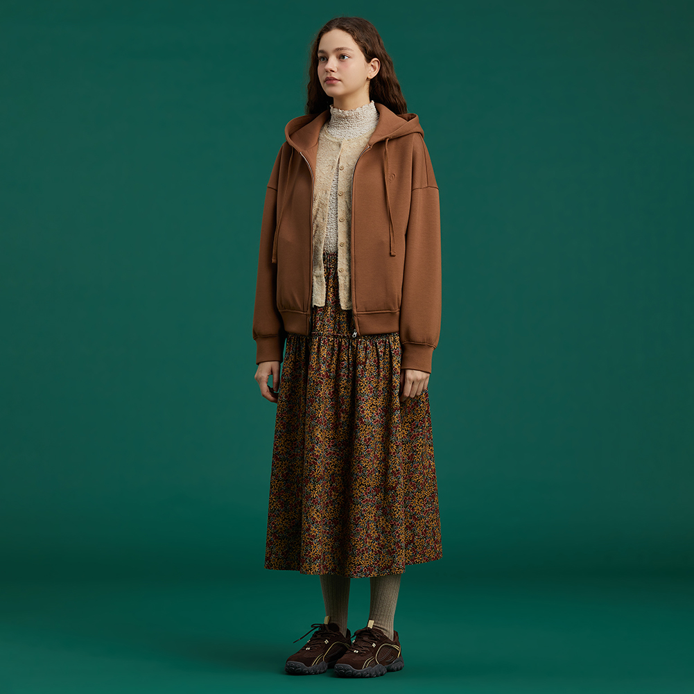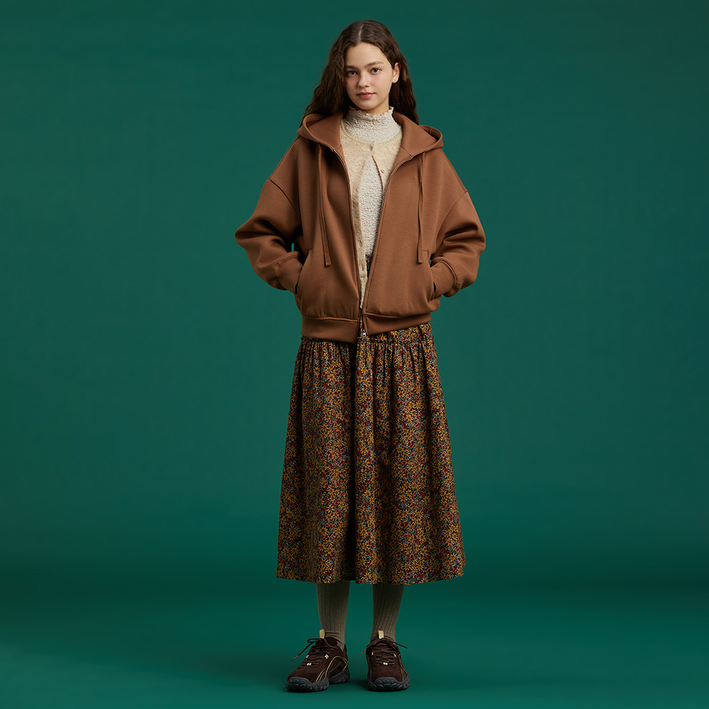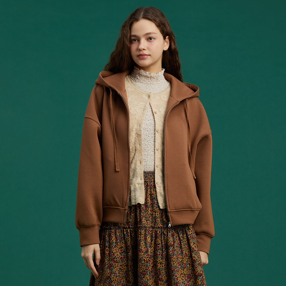 하트 모티브 엠보 자수로 디테일을 더하고 소매와 밑단 볼륨을 살려 귀엽게 연출가능한 스타일.