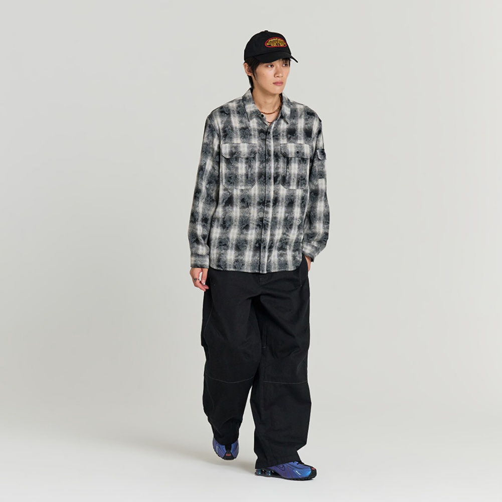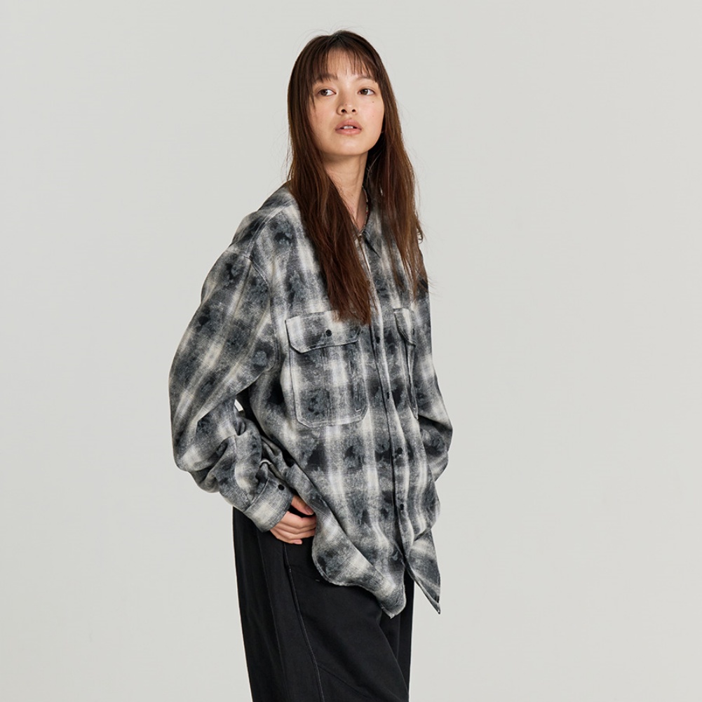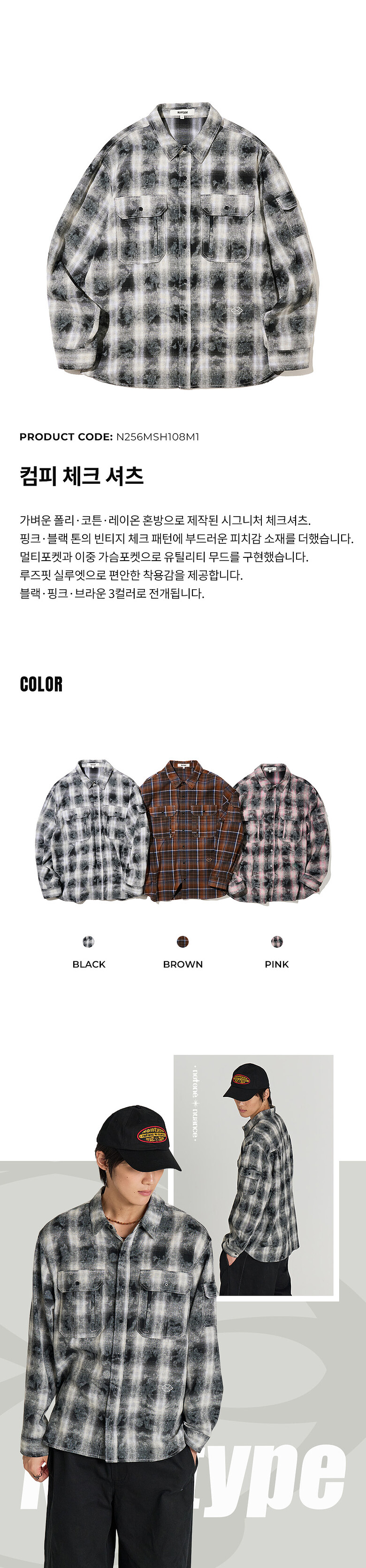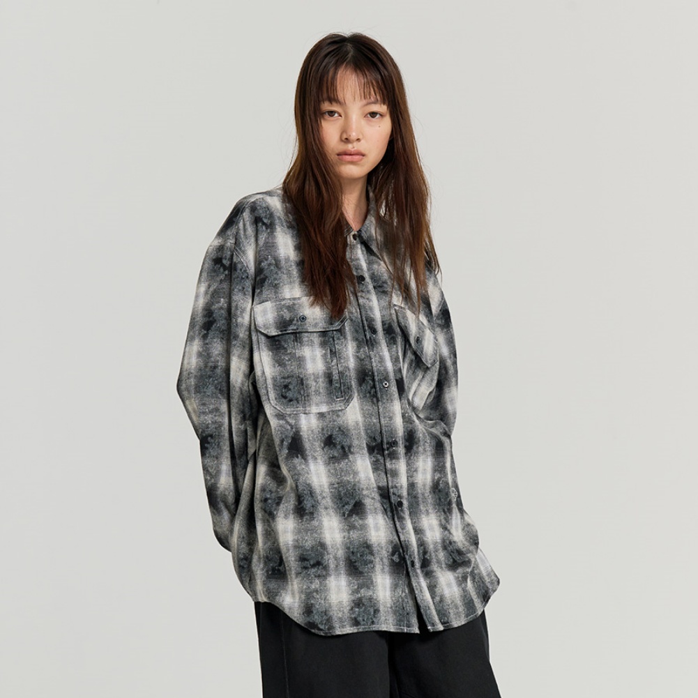 - 블랙과 화이트베이지 톤으로 이루어진 체크 패턴에 번진듯한 효과를 준 빈티지 무드의 아이템