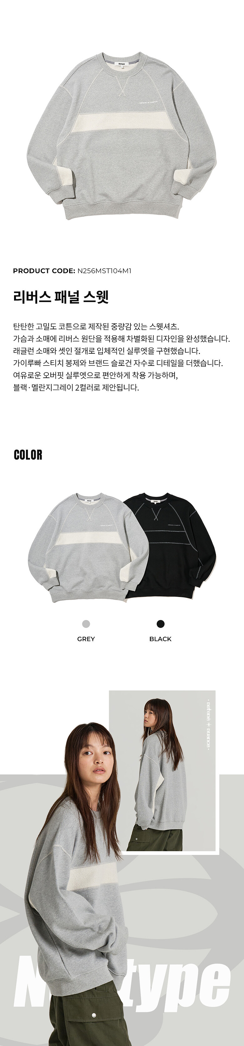 - 가슴과 소매 아래로 소재를 뒤짚은 리버스 원단으로 구현한 아이템