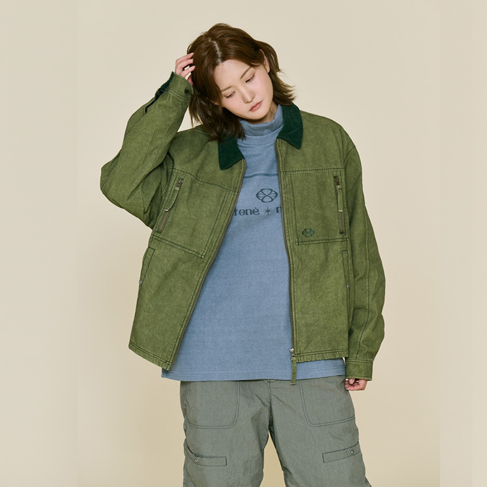 - 강한 워싱 가공을 통하여 자연스러운 색감의 빈티지한 무드로 제안하는 아우터
