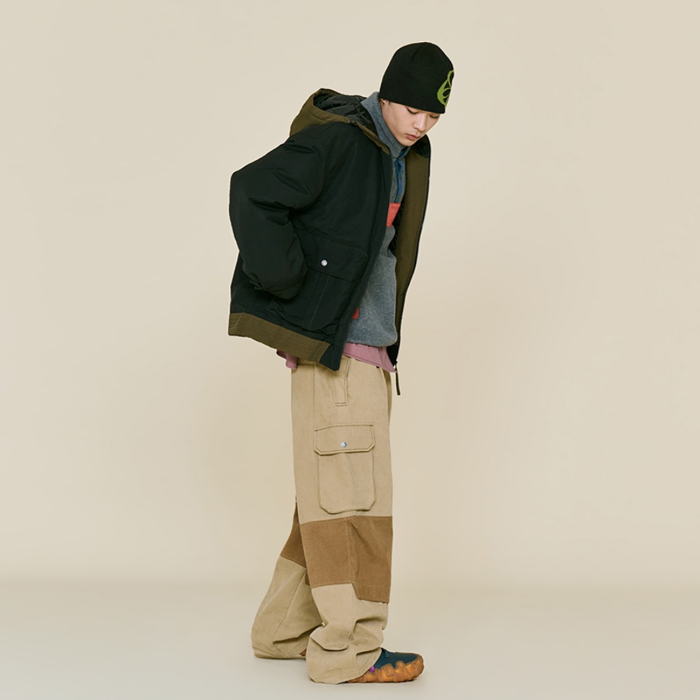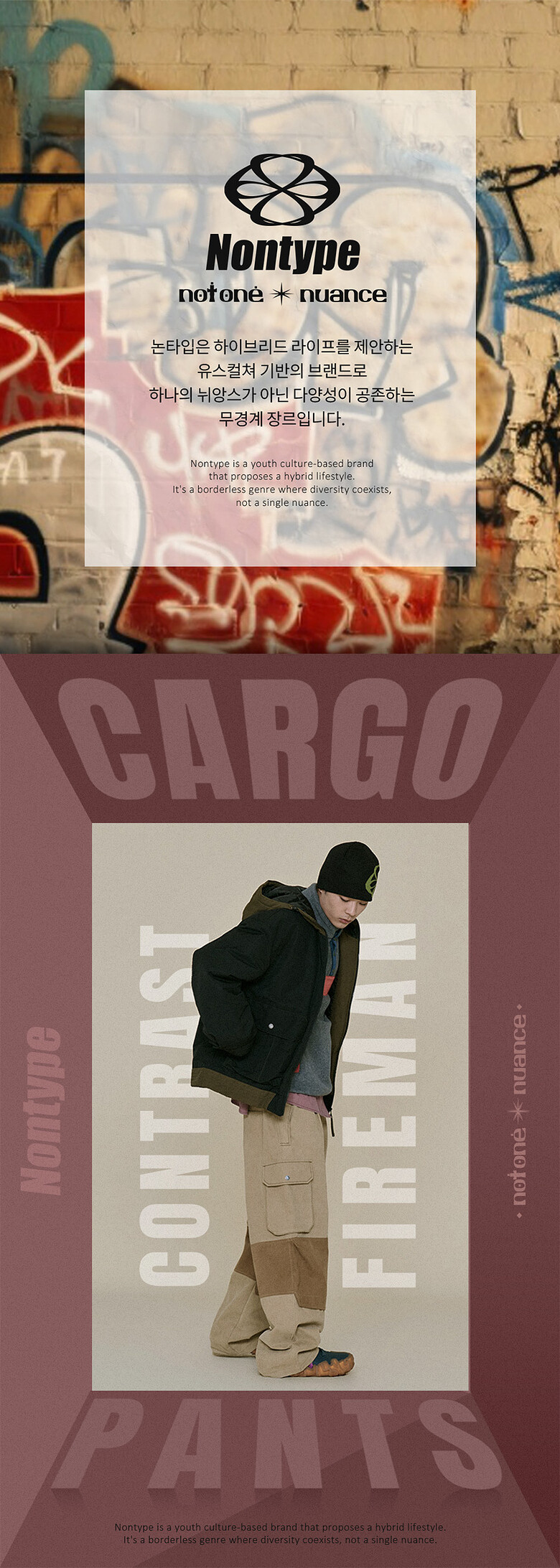 - 무릎 블럭 배색을 적용하여 오리지널 파이어맨(소방관) 팬츠를 논타입만의 독창적인 무드로 재해석한 아이템