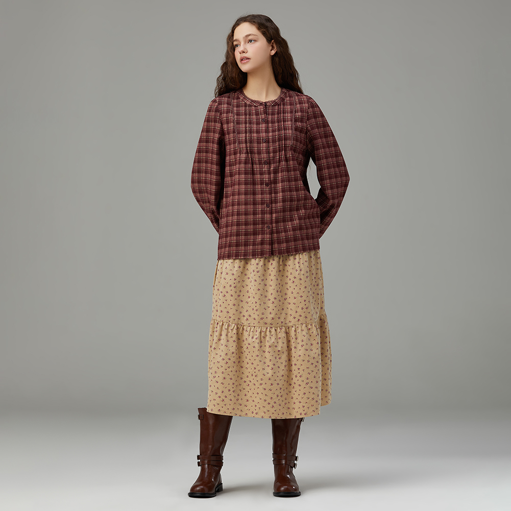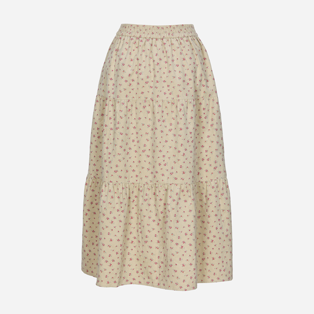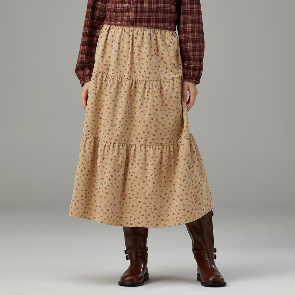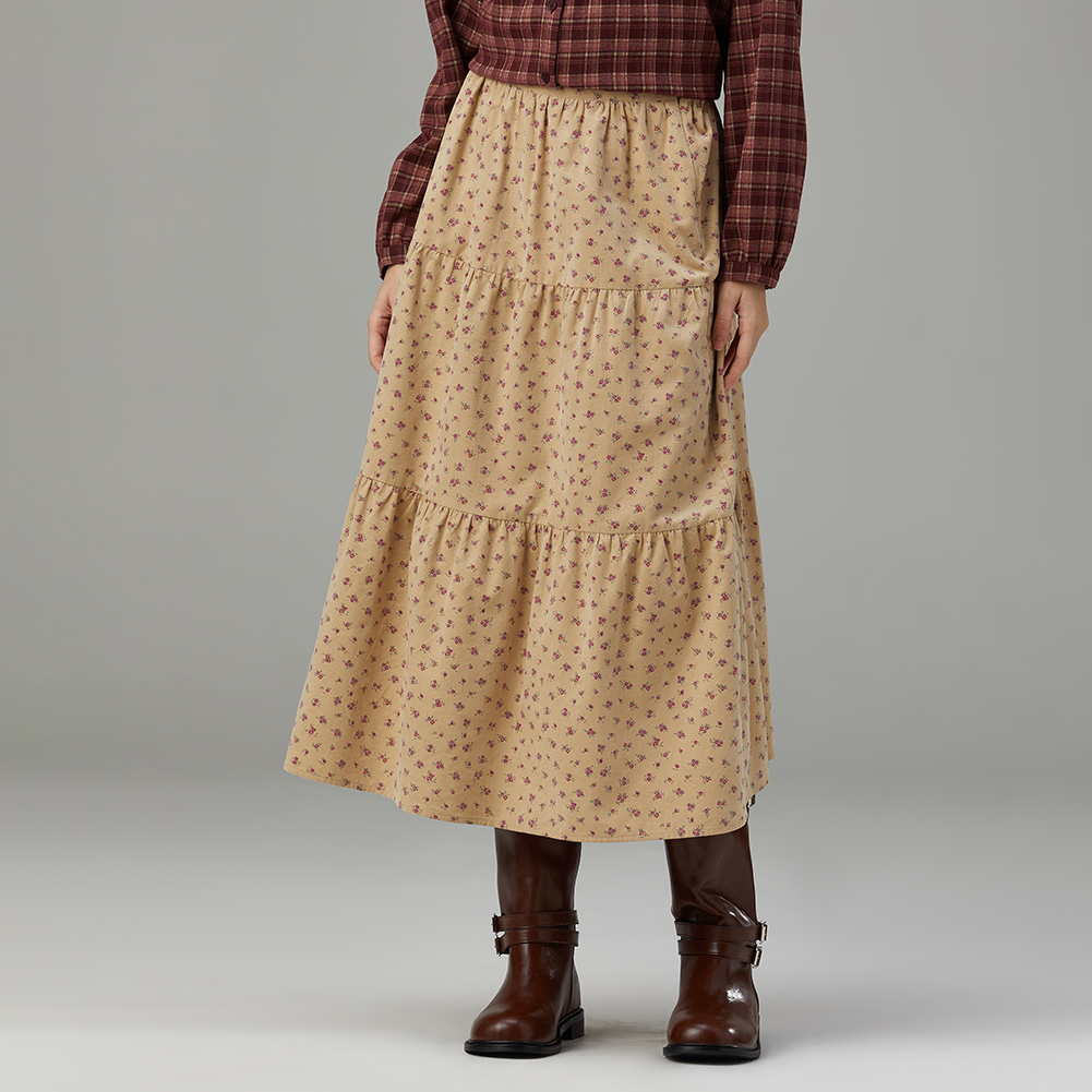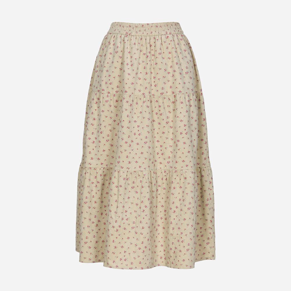 잔꽃무늬 패턴이 돋보이는 코듀로이 소재의 A라인 스커트.