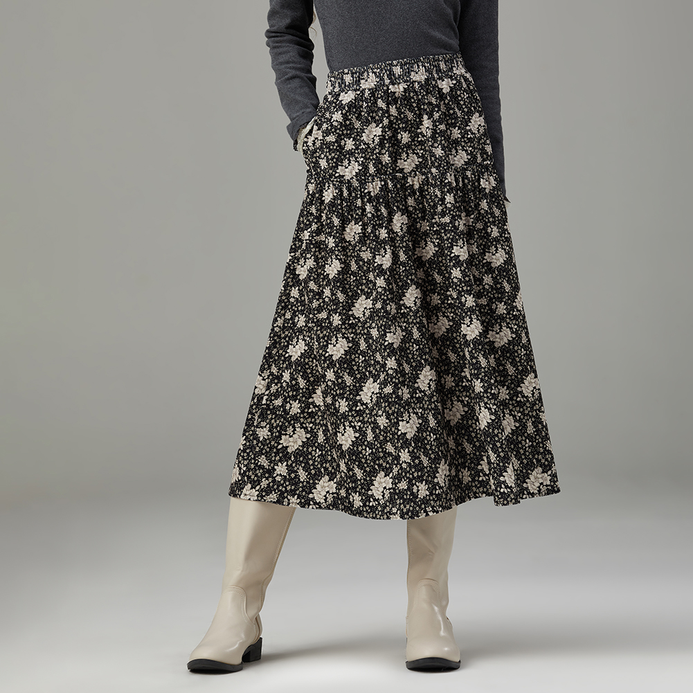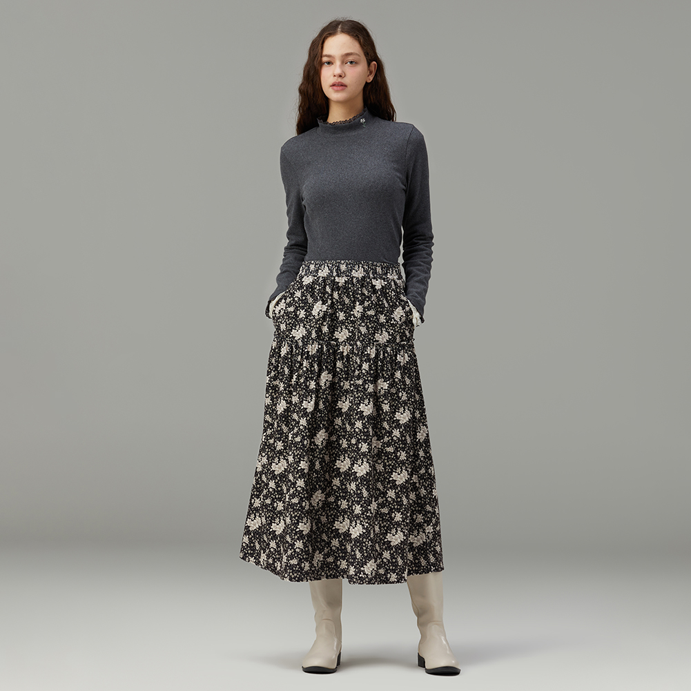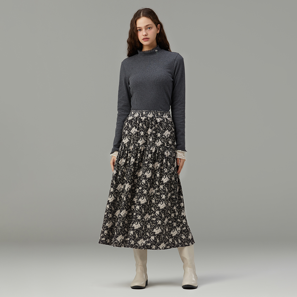 힙 라인에 절개와 프릴 디테일로 포인트를 주었으며, 허리 전체 밴딩으로 편안하게 착용 가능한 아이템.