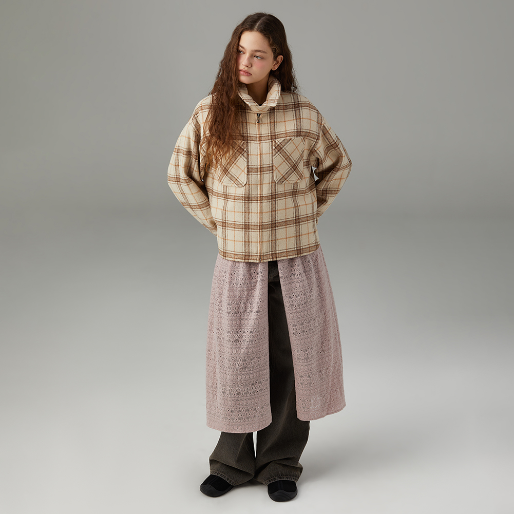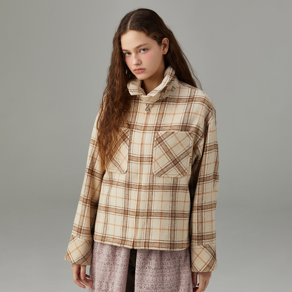 체크 트러커 집업 자켓